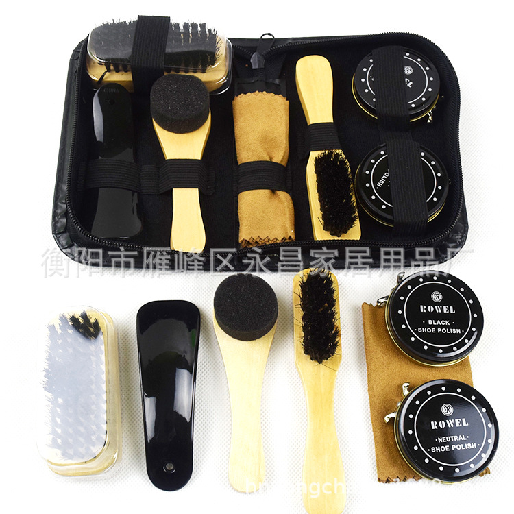 공장 재고 구두 광택제 세트 신발 연마 도구 세트 신발 광택 가방 진짜 가죽 신발 관리 세트 8 피스 세트스토어 가기