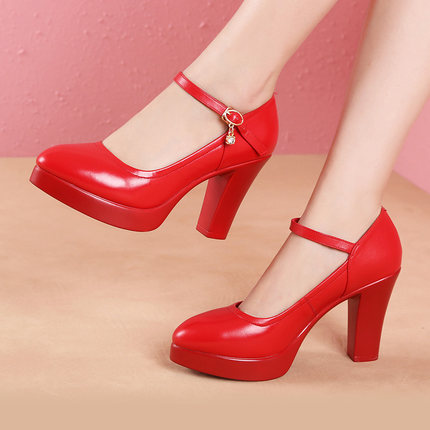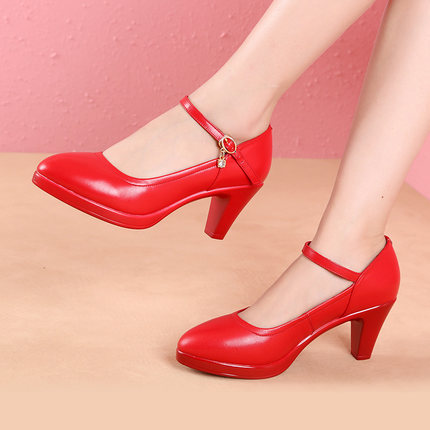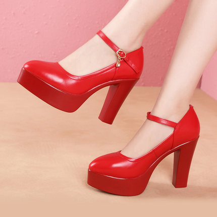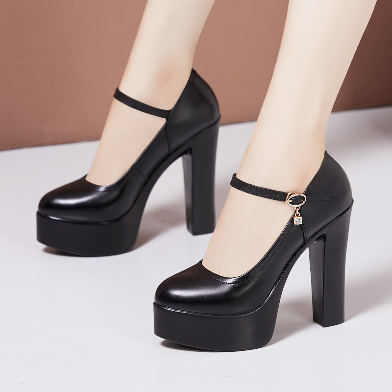 오만린 치파오 워킹쇼 하이힐 여성용 천연 가죽 두꺼운 굽 두꺼운 밑창 방수 플랫폼 전문 대형 사이즈 작업화 여성 패션스토어 가기