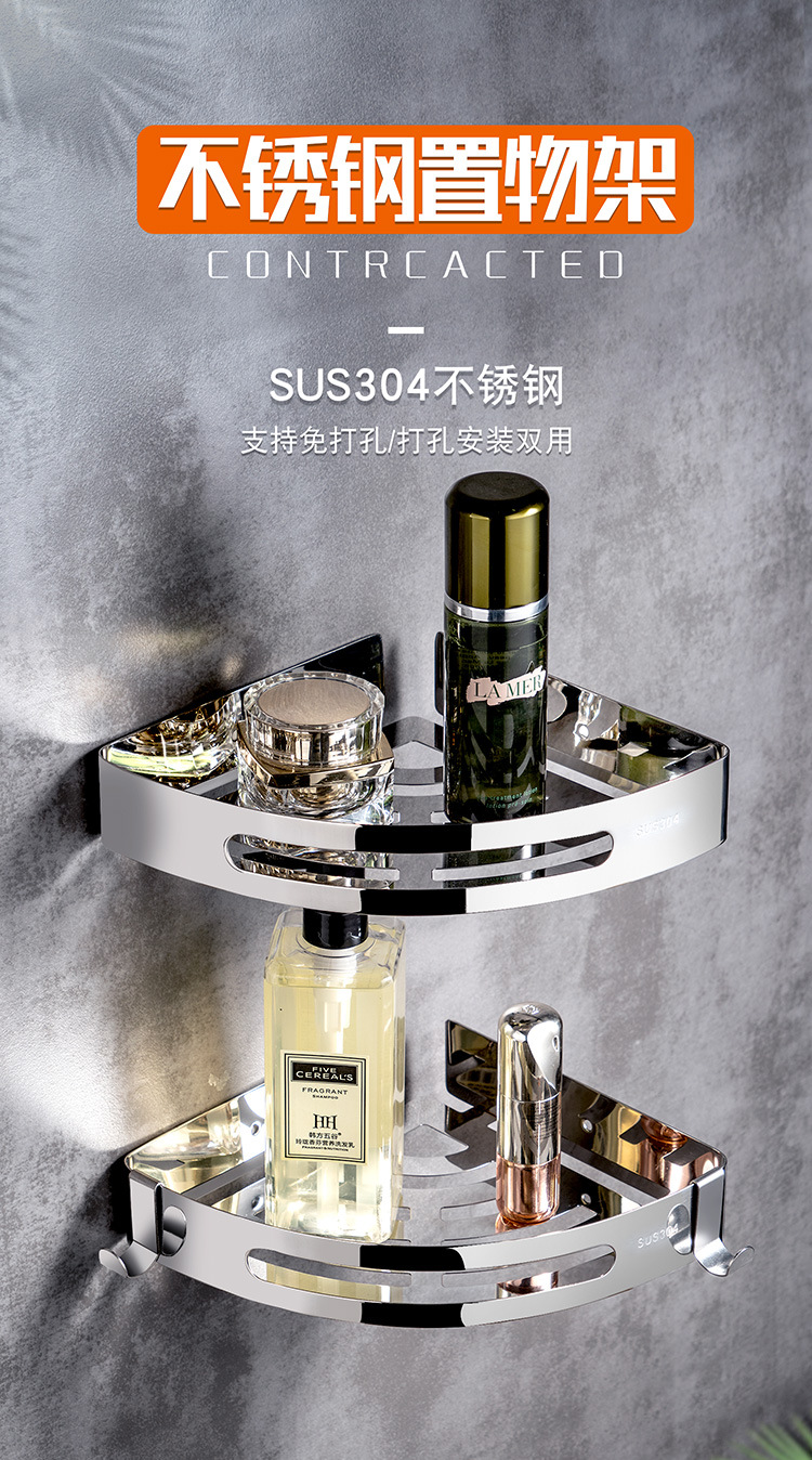 무타공 304 스테인리스 욕실 삼각형 선반 화장실 코너 블랙 삼각형 선반 도매