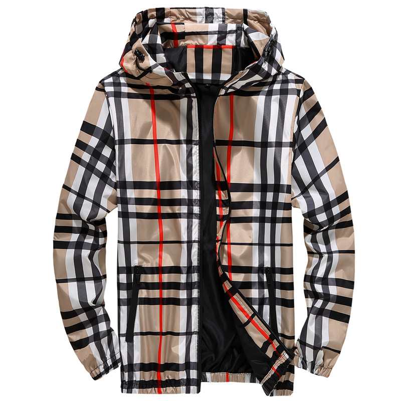 6681 봄 새로운 남자의 일본 후드 격자 무늬 재킷 청소년 학생 플러스 사이즈 캐주얼 코트 유행 세대 머리스토어 가기