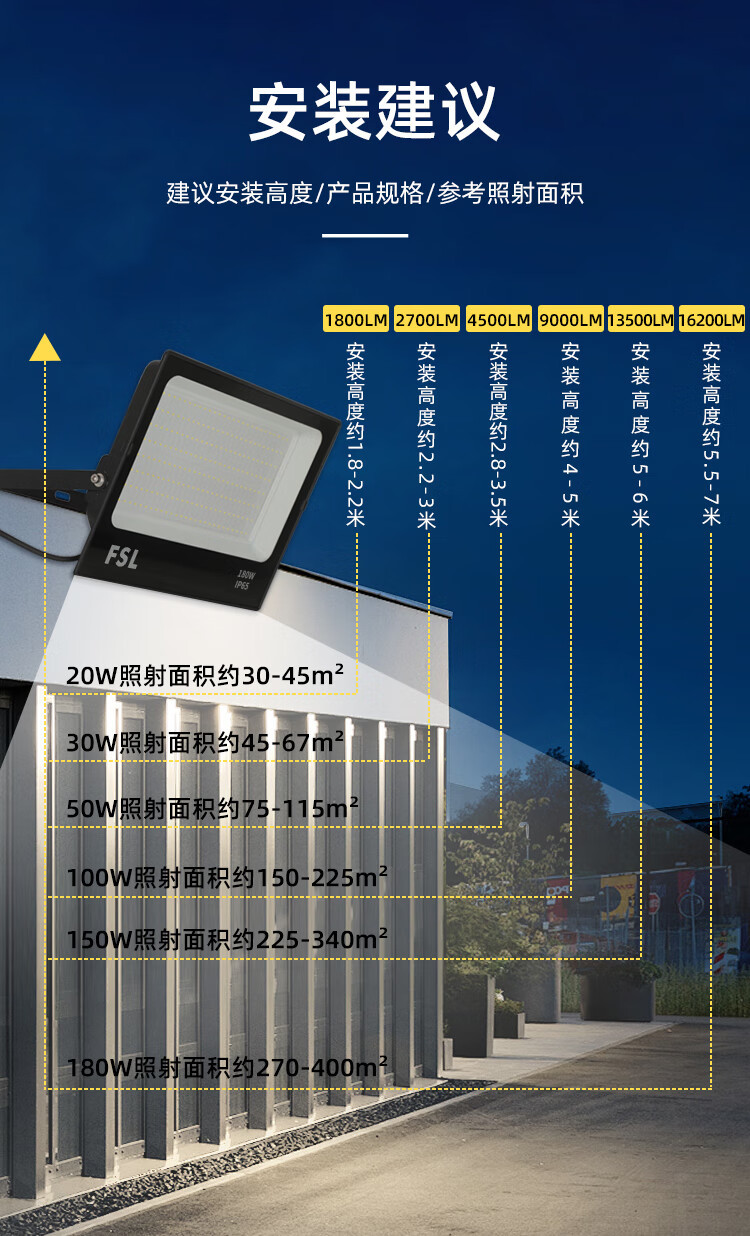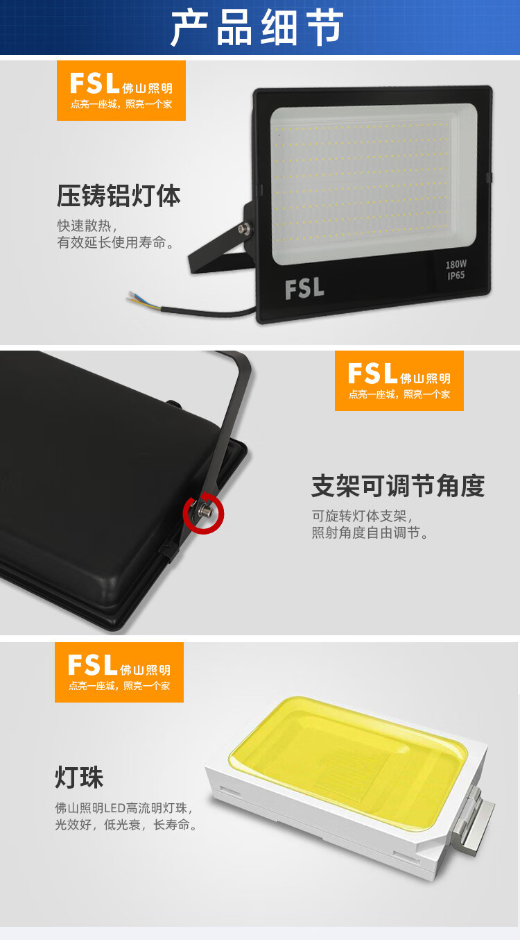 FSL佛山조명 산업용 및 광산용 LED 투광등 20W50W 실외 투광등 방수 가로등 광고 투광등스토어 가기