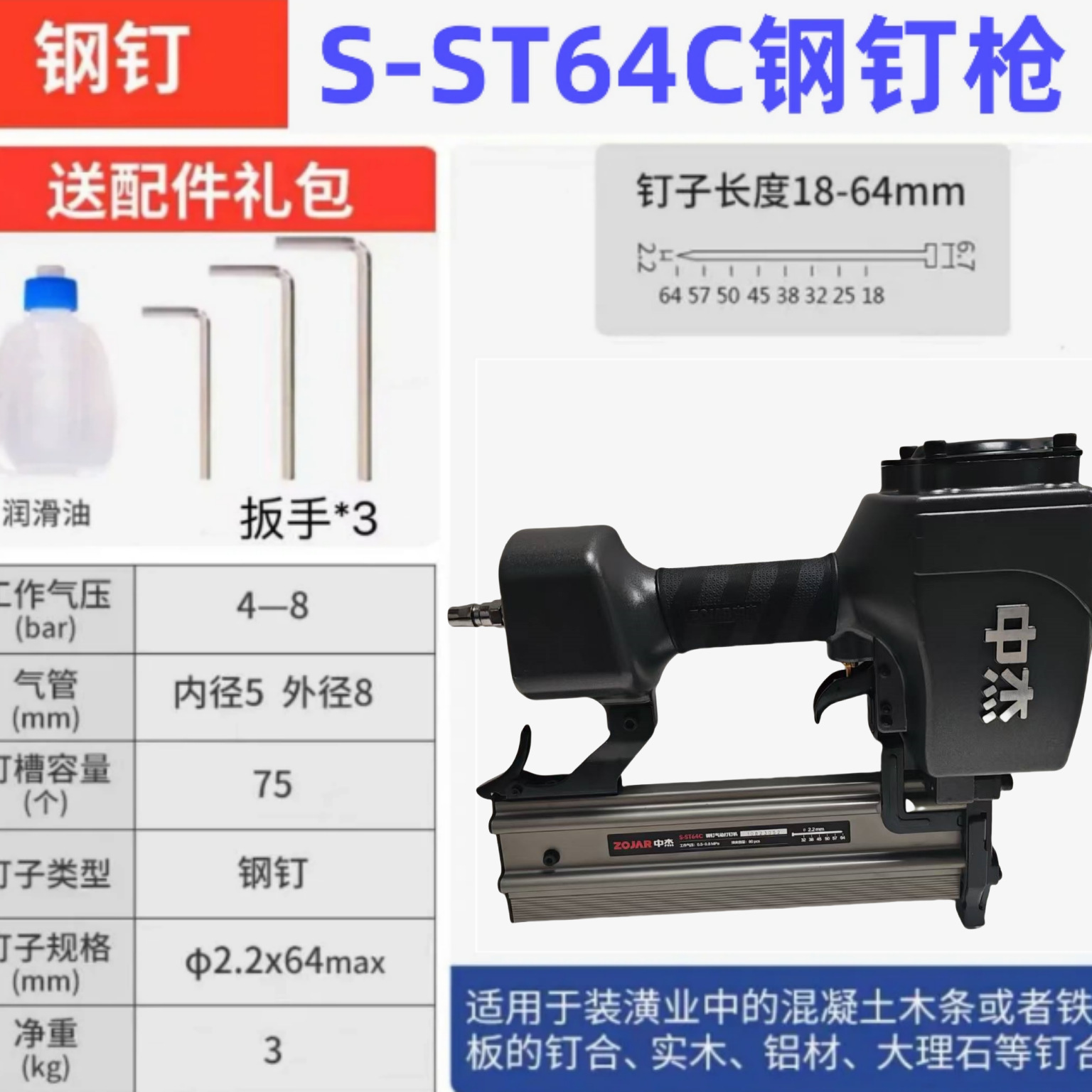 • Zhongjie 강철 못 총 ST64G (스테이플 없음)