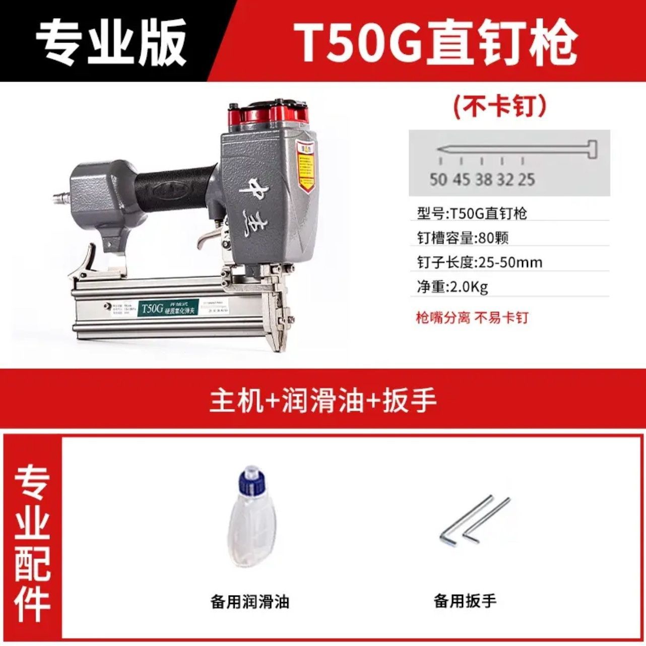 • Zhongjie 스트레이트 네일 건 T50G (스테이플 없음)