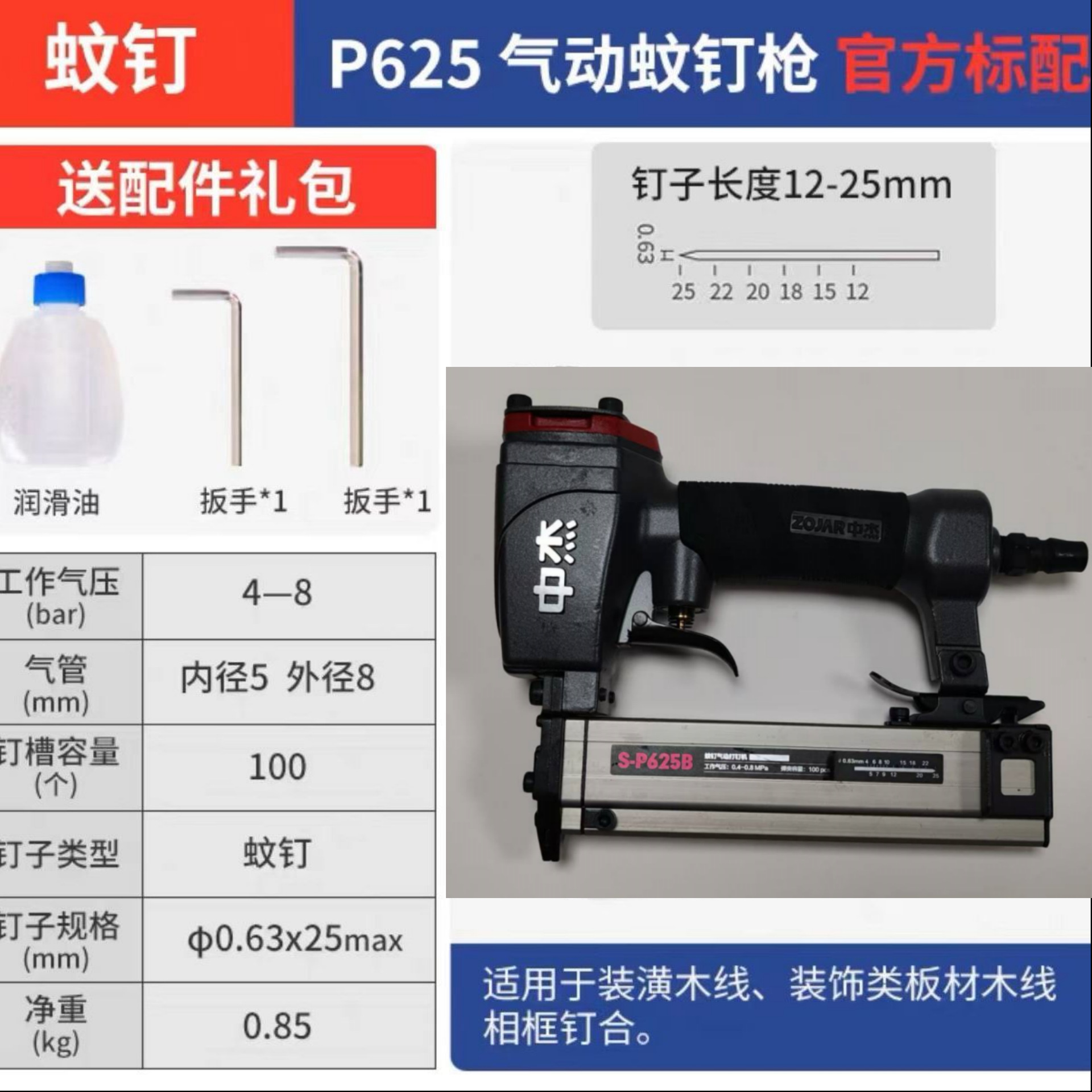 • Zhongjie 스트레이트 네일 건 F30G (스테이플 없음)