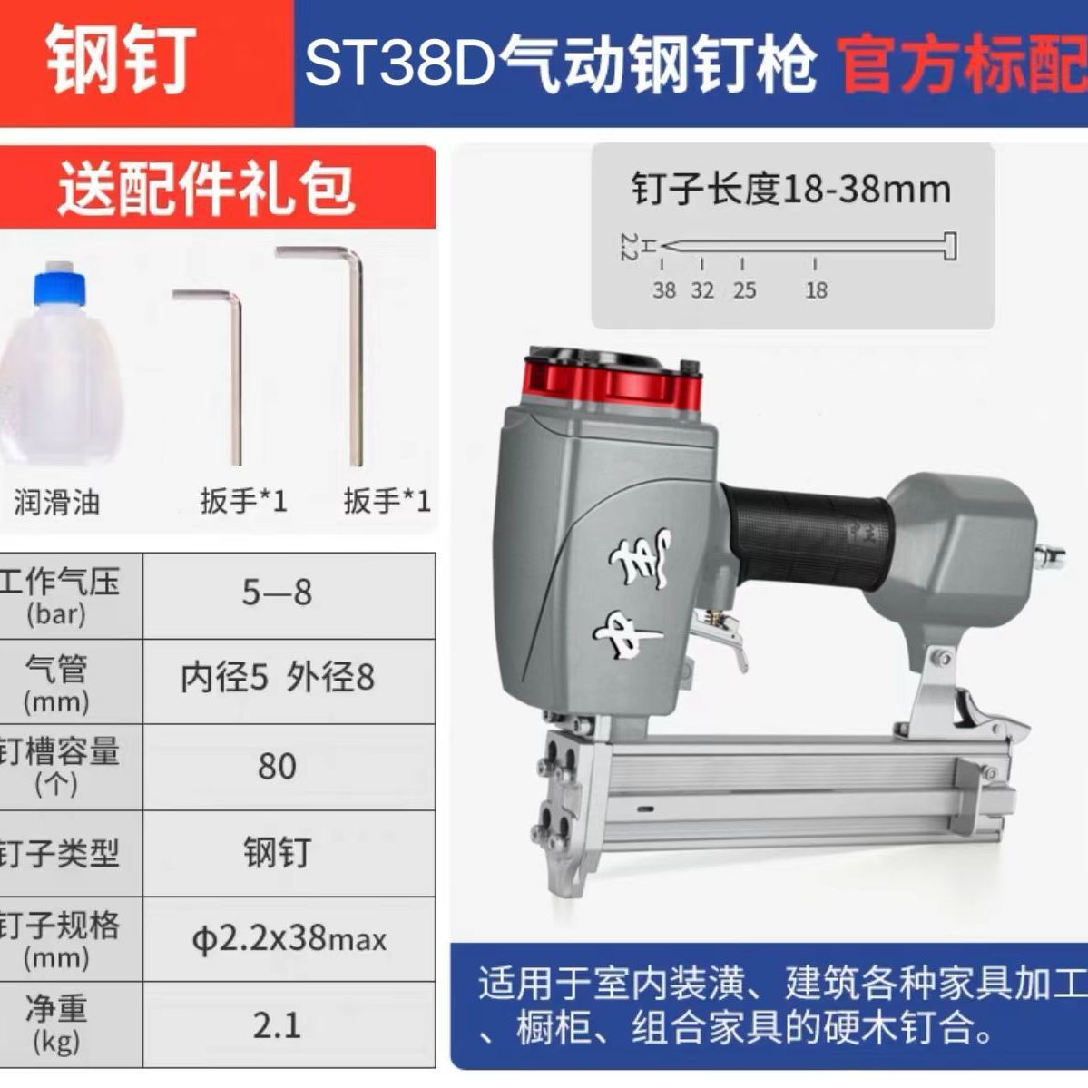 • Zhongjie 강철 못 총 ST38 짧은