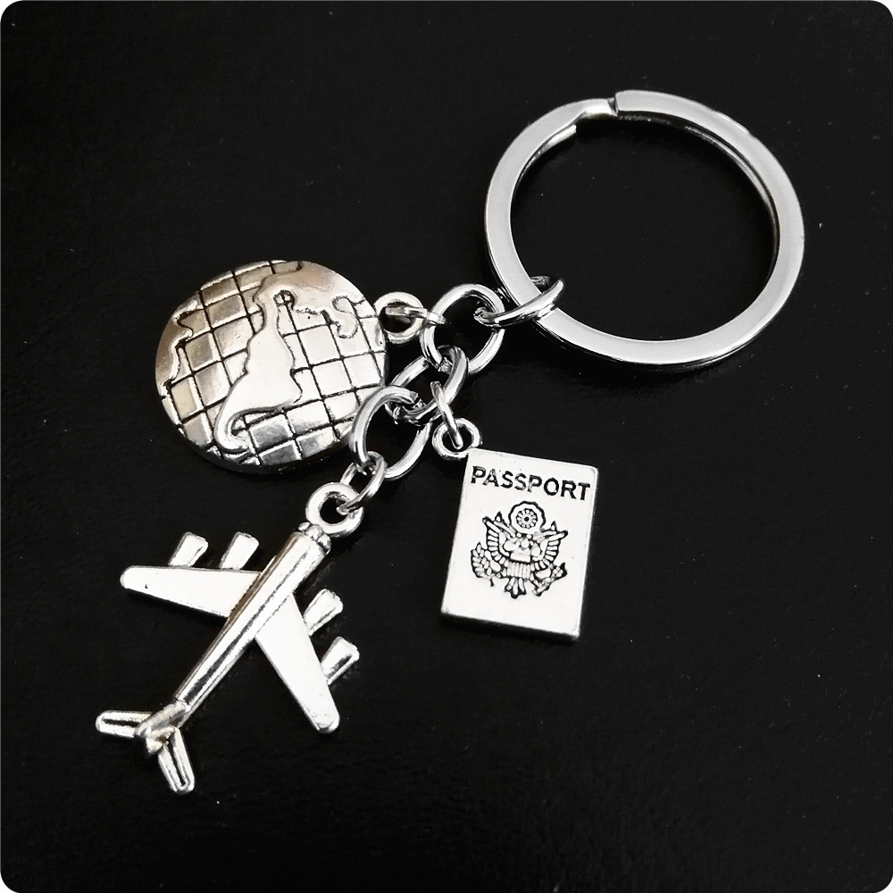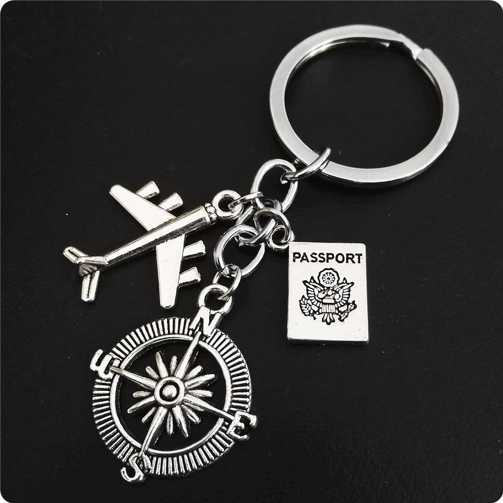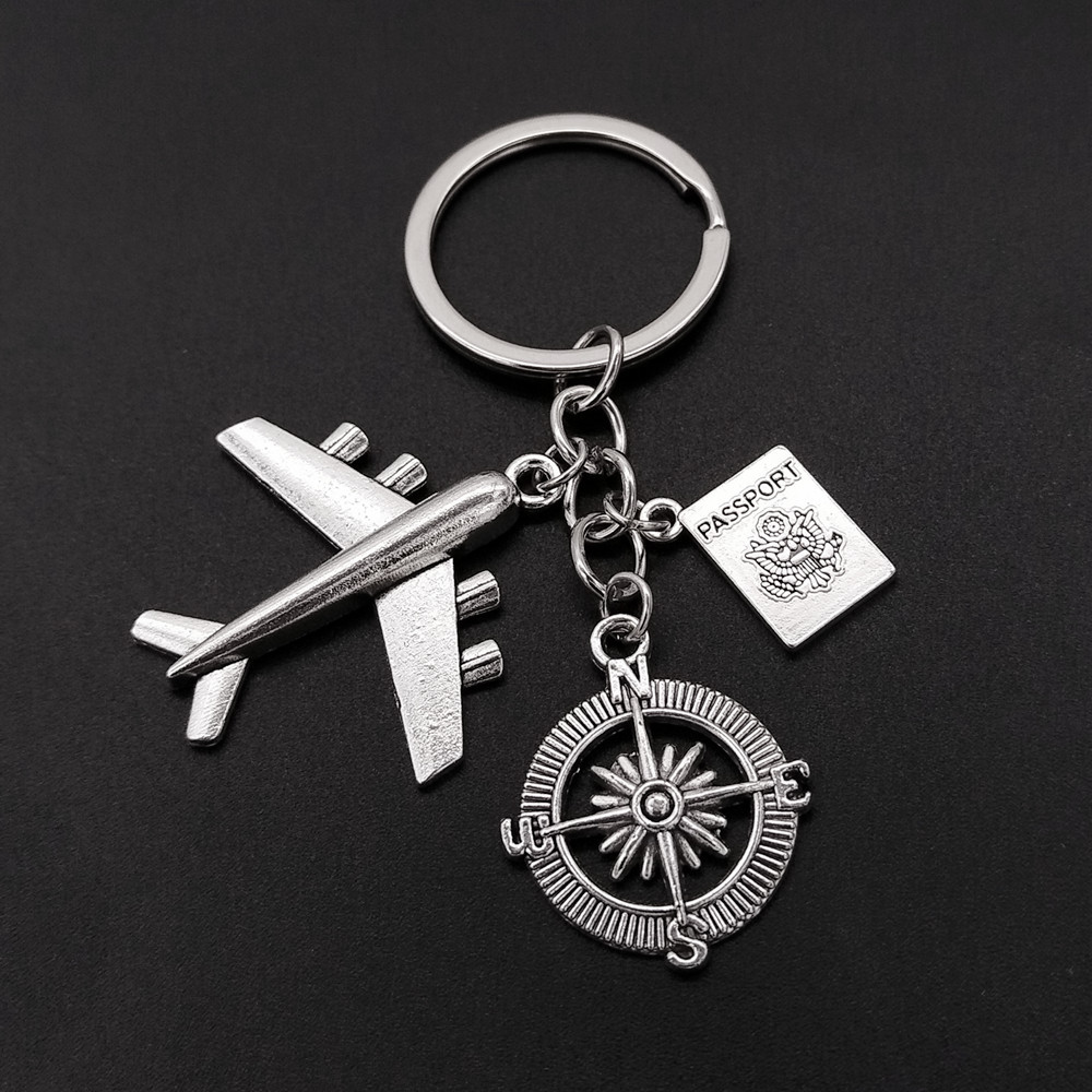 유럽과 미국의 크리에이티브 항공기 지구 여행 열쇠고리 장식품 나침반 카메라 금속 열쇠고리 펜던트스토어 가기