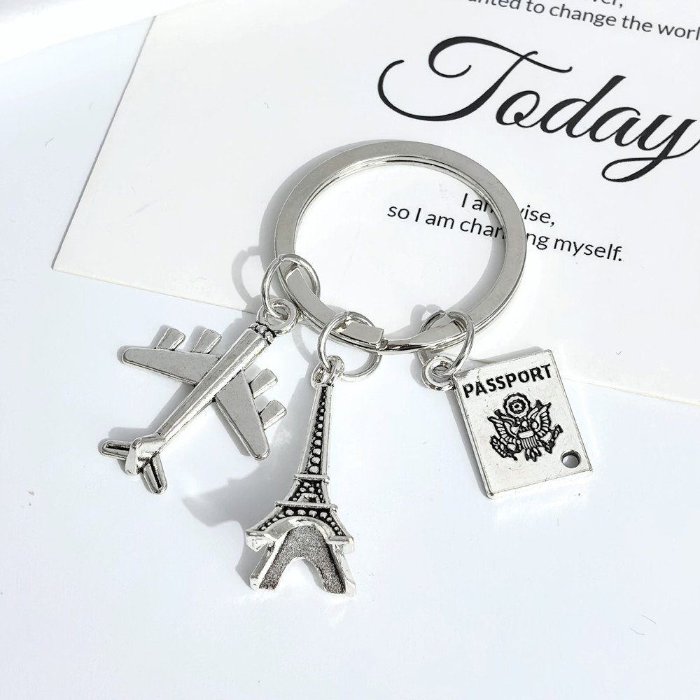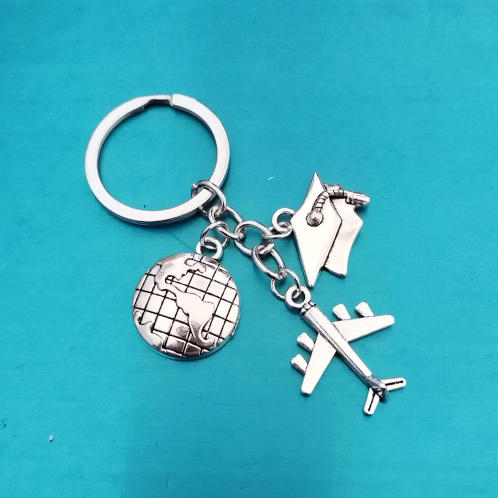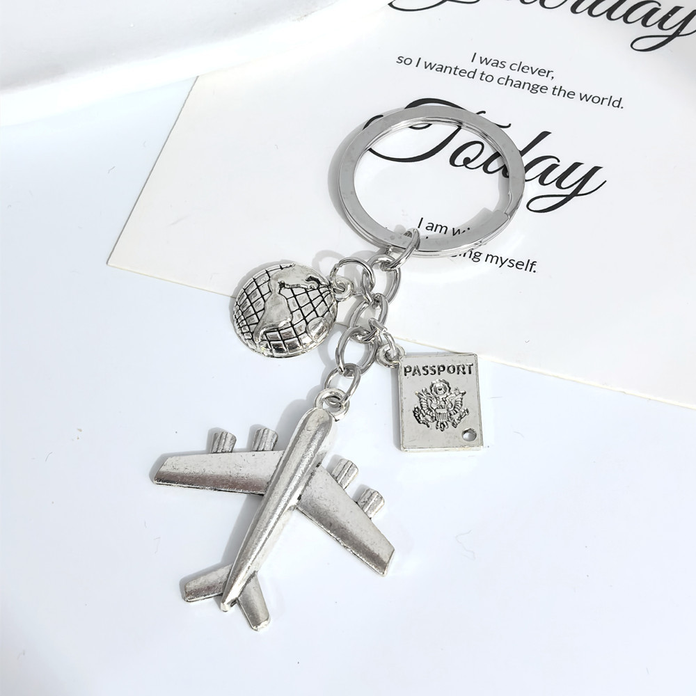 유럽과 미국의 크리에이티브 항공기 지구 여행 열쇠고리 장식품 나침반 카메라 금속 열쇠고리 펜던트
