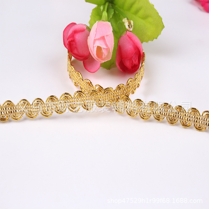 연중 무휴로 금은사 레이스, 민족 의상 부자재, 커튼용 작은 곡선 레이스, 물결 모양 금색 레이스를 공급합니다.스토어 가기