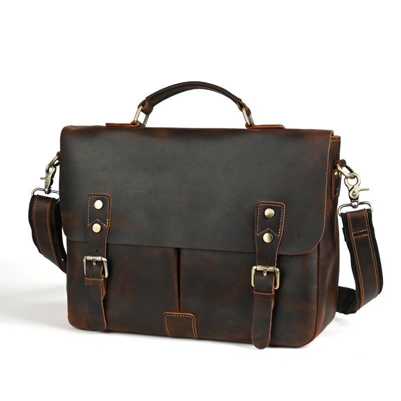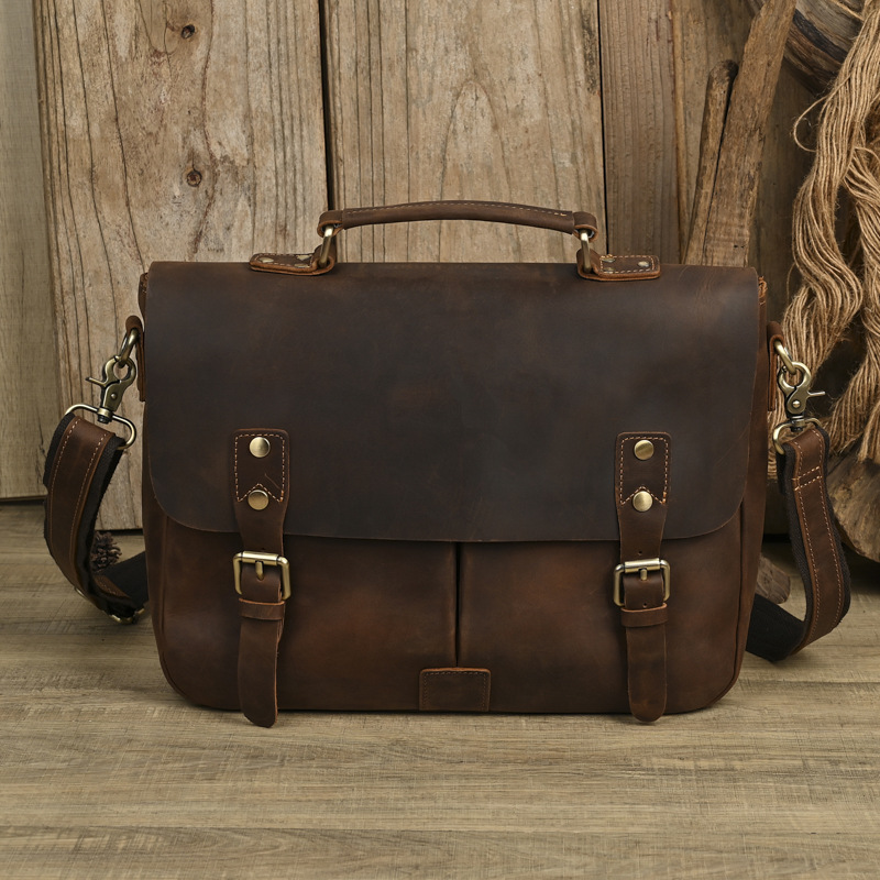 빈티지 남자의 미친 말 가죽 메신저 백 헤드 레이어 소가죽 서류 가방 가죽 어깨 크로스 바디 비즈니스 컴퓨터 가방