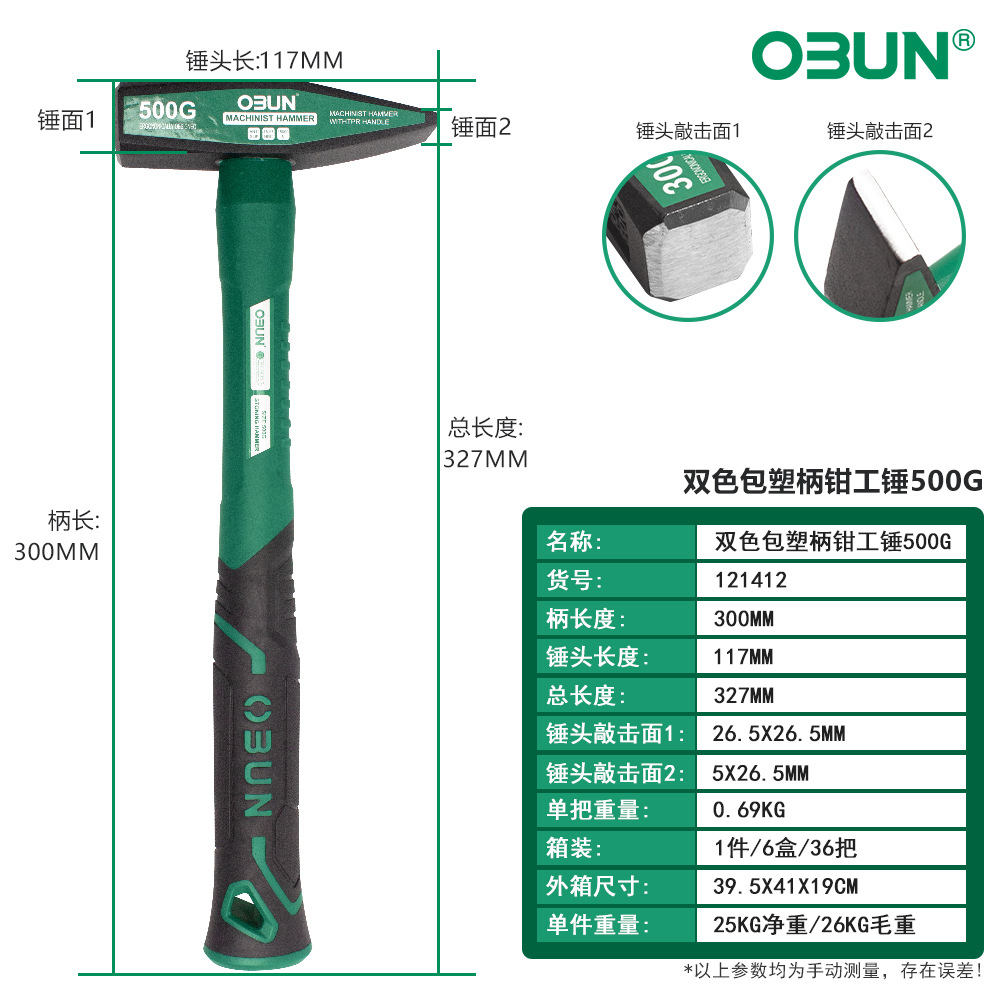 Oubang Fitter Hammer 다기능 2 색 플라스틱 핸들 피터 해머 높은 탄소 강철 포지셔닝 목공 해머 검게 처리스토어 가기