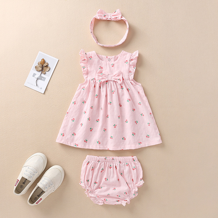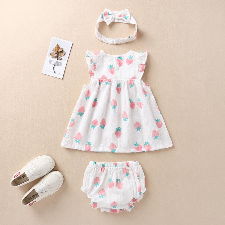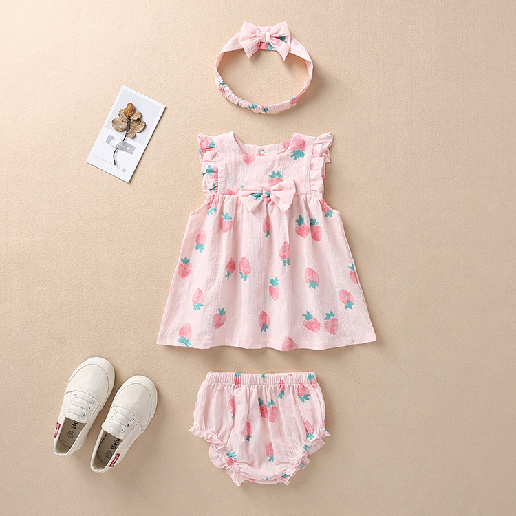 2024 여름 속옷 머리띠 세트 아기 옷 리본 아동복 드레스 공주 드레스 유아용 딸기