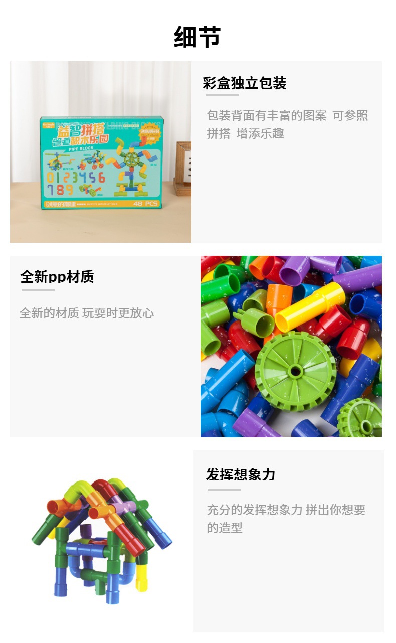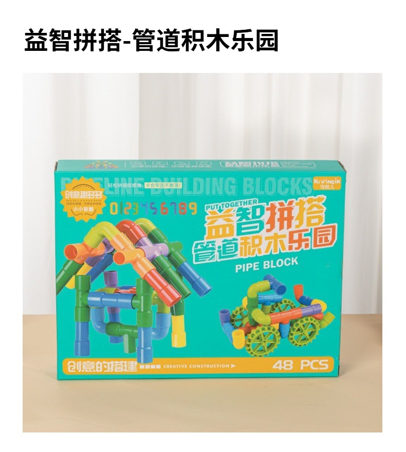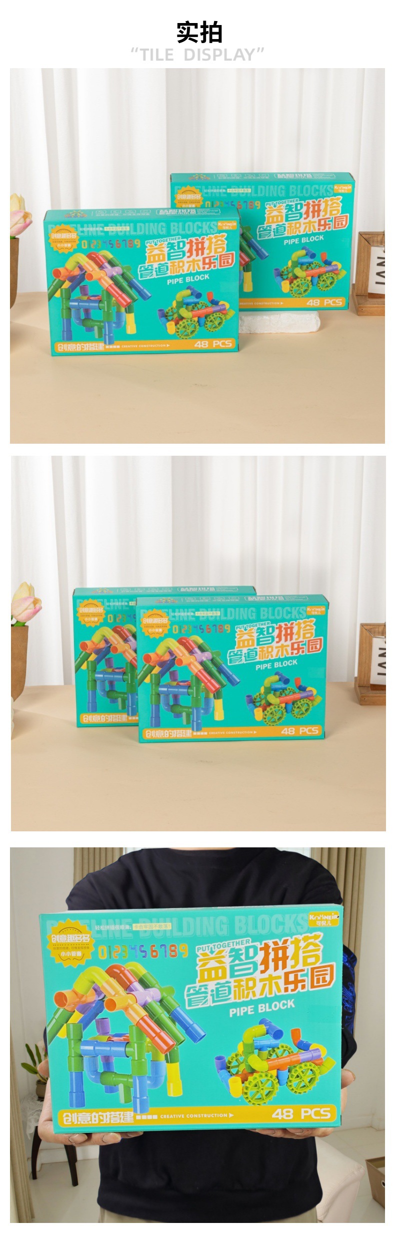 공장 도매 유치원 데스크탑 박스형 휠 물 파이프 빌딩 블록 조립 플라스틱 장난감스토어 가기