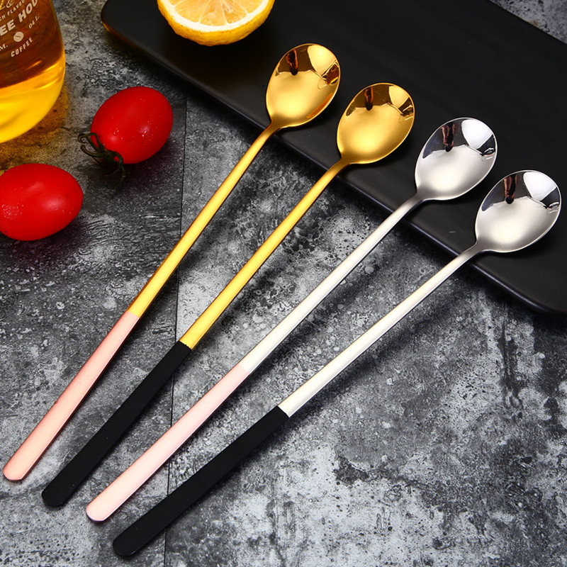 304 스테인레스 스틸 아이스 스푼 크로스 보더 크리 에이 티브 블랙 골드 커피 교반 스푼 KTV 바 스푼 롱 핸들 스푼 바텐더 스틱스토어 가기