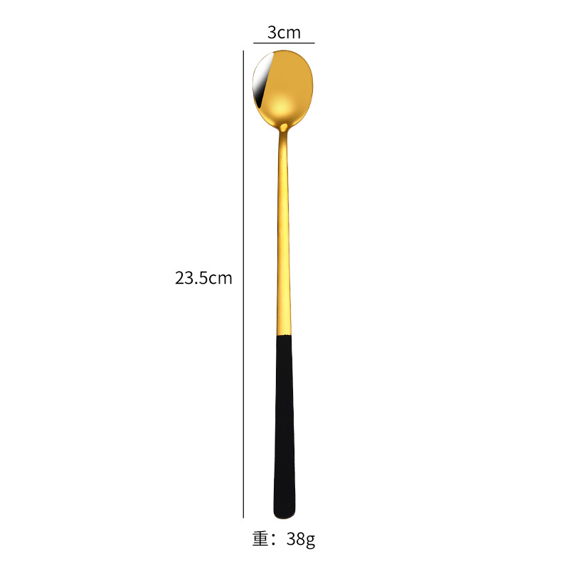 304 스테인레스 스틸 아이스 스푼 크로스 보더 크리 에이 티브 블랙 골드 커피 교반 스푼 KTV 바 스푼 롱 핸들 스푼 바텐더 스틱