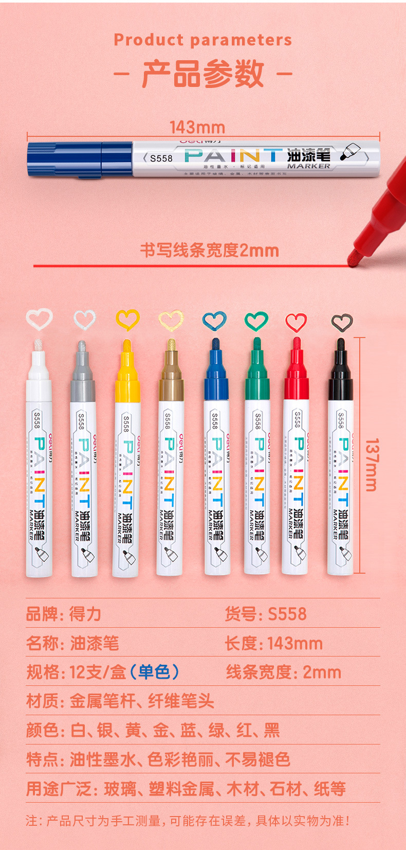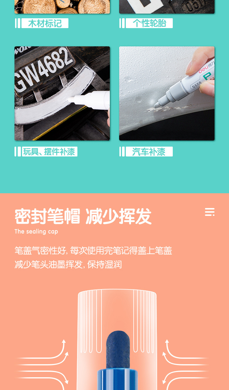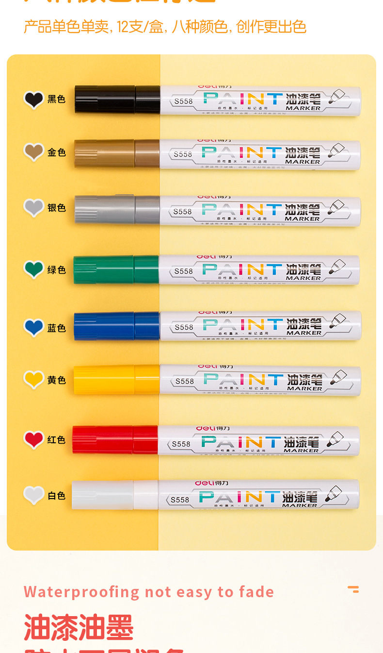 델리/델리 페인트펜 S558 펜 타이어펜 사인펜 사진첩 낙서 마커 타이어 전용스토어 가기