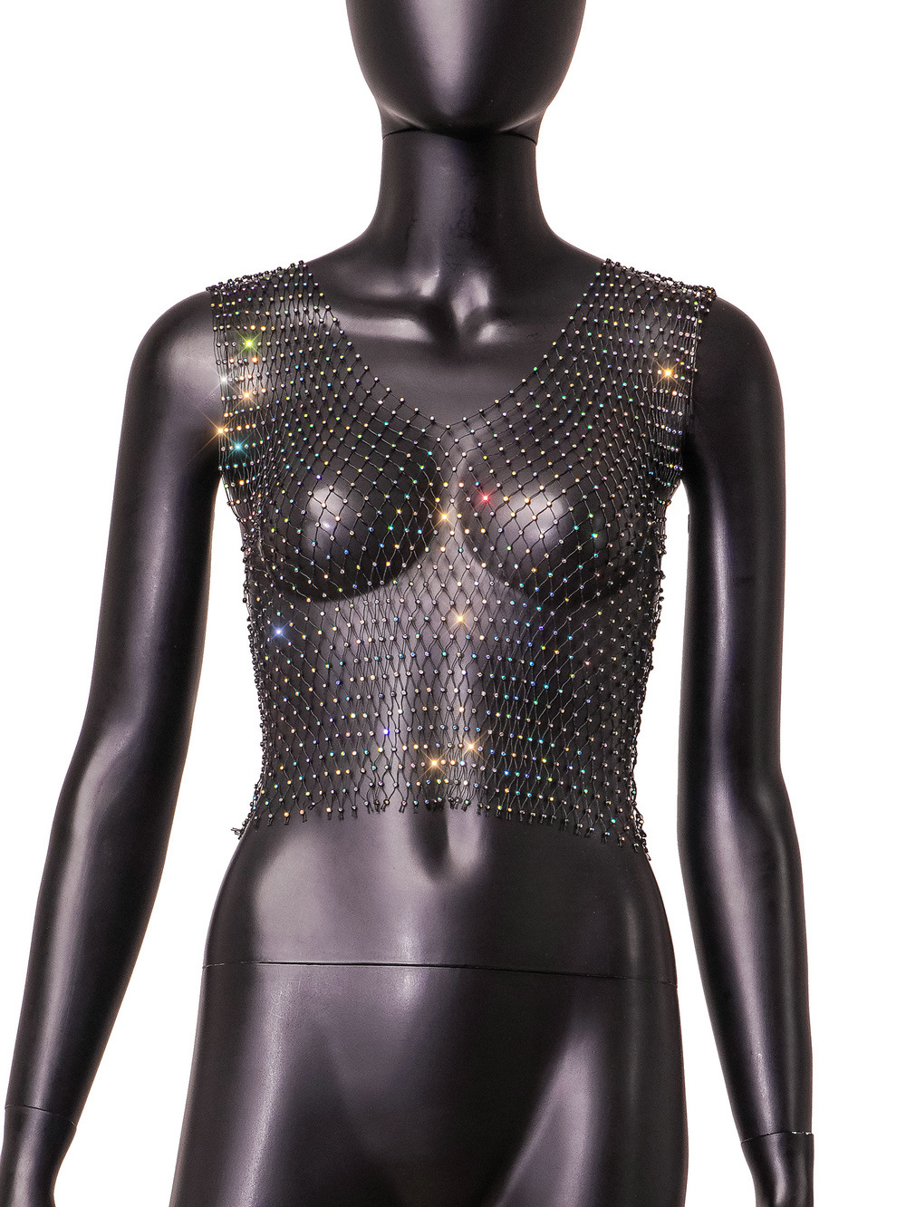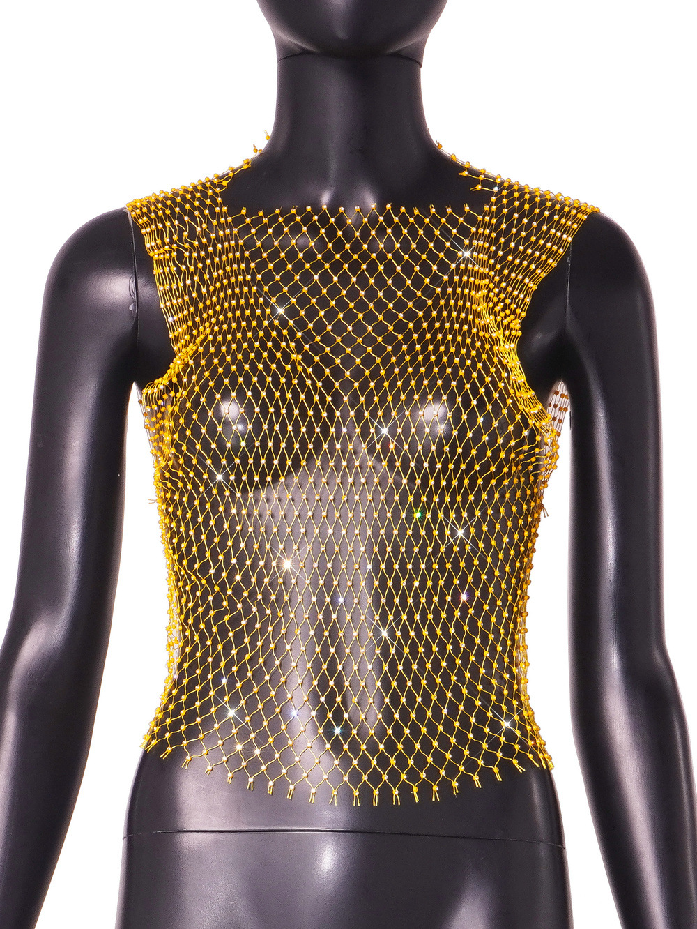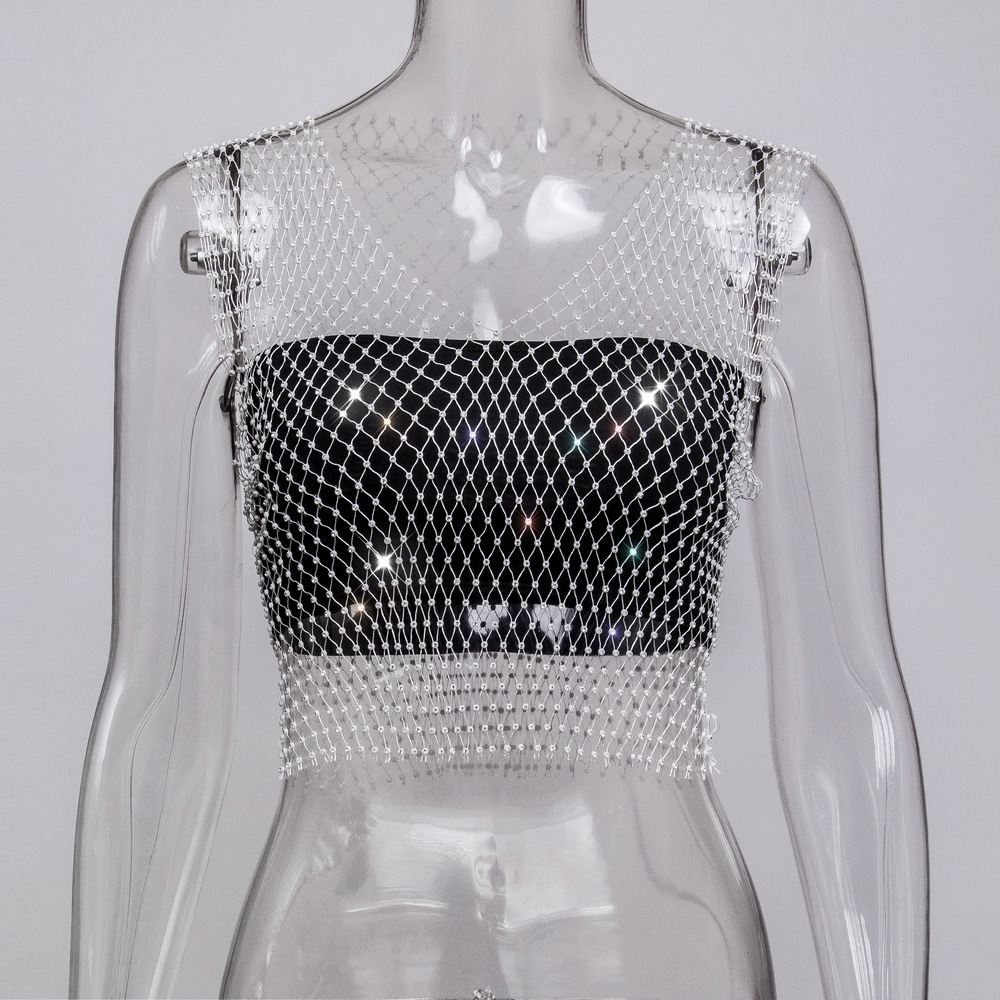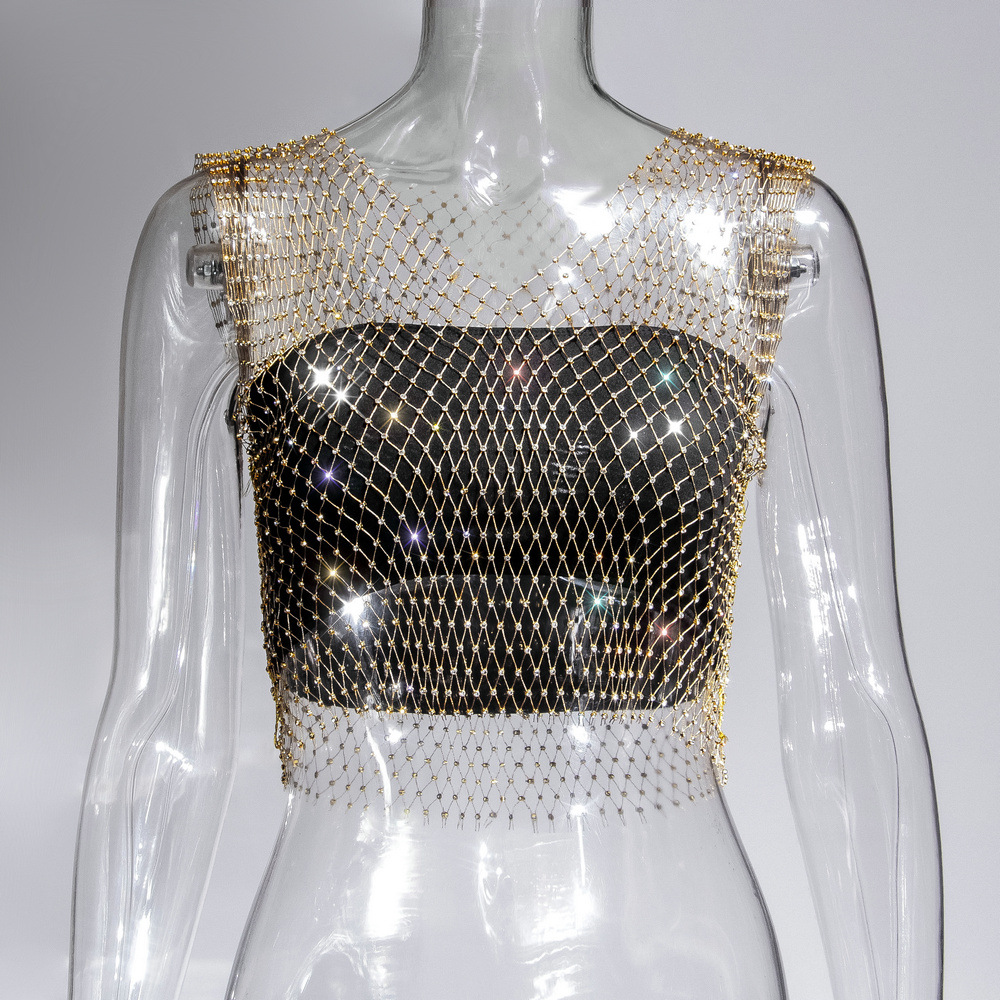 라인스톤 피쉬넷 탑 유럽과 미국 여름 아마존 뉴 메쉬 다이아몬드 플래시 다이아몬드 여성 반팔 조끼스토어 가기