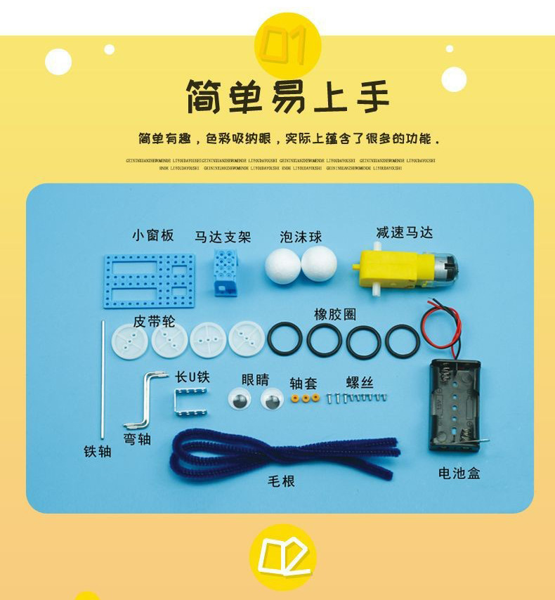 과학기술 소량 생산 DIY 전기 기계 크롤러 로봇 소형 발명 과학 실험 수작업 재료 패키지