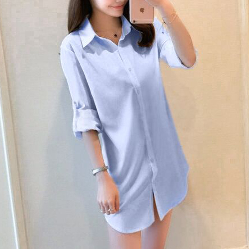 2025 중간 길이 흰색 셔츠 여성 긴팔 새로운 느슨한 버전 ins 홍콩 스타일 바닥 셔츠 섹시한 카디건 여성 셔츠스토어 가기