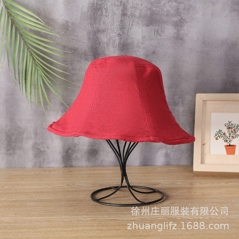 일본의면과 린넨 태양 모자 숙녀 야외 레저 린넨 어부 모자 접이식 통기성 등산 모자 도매