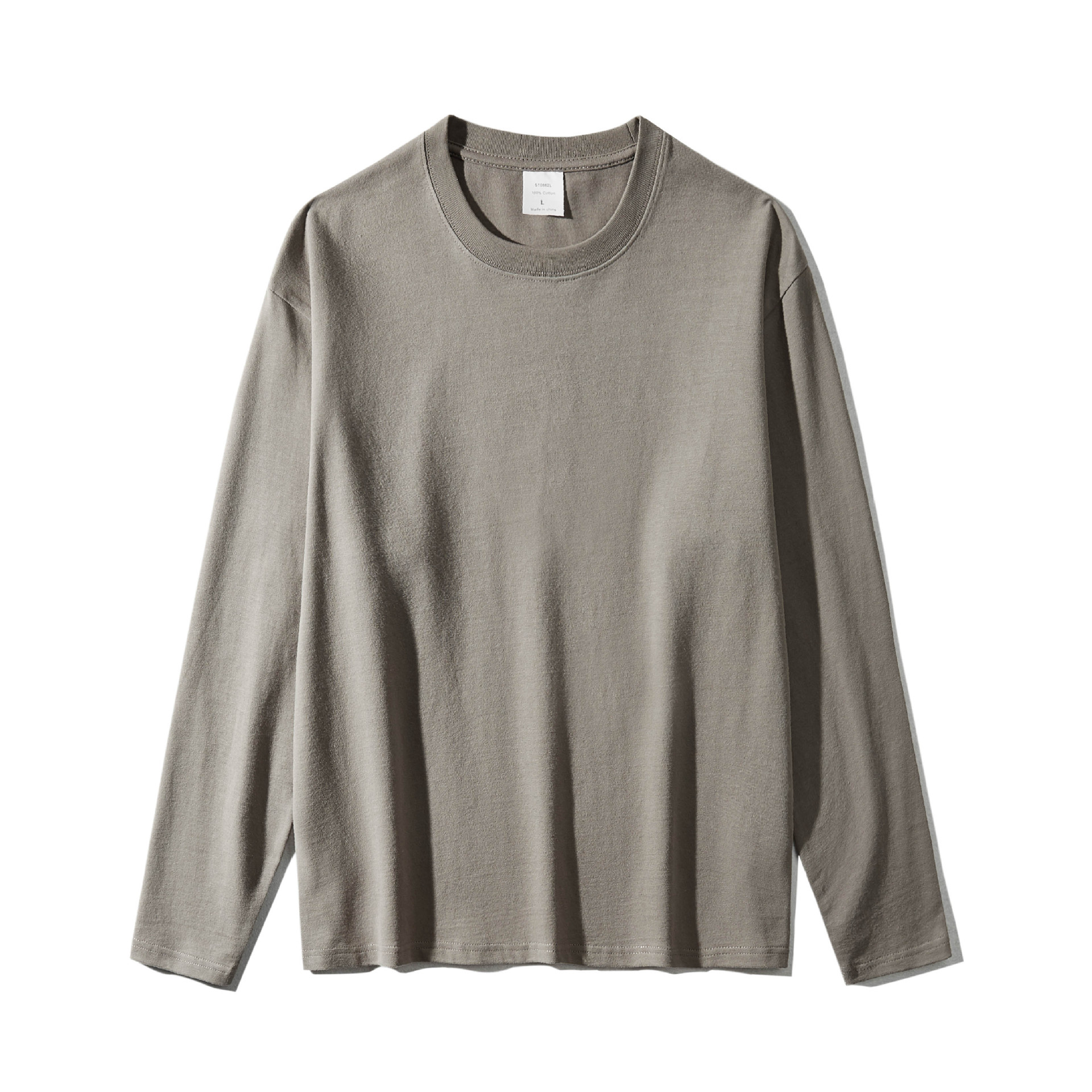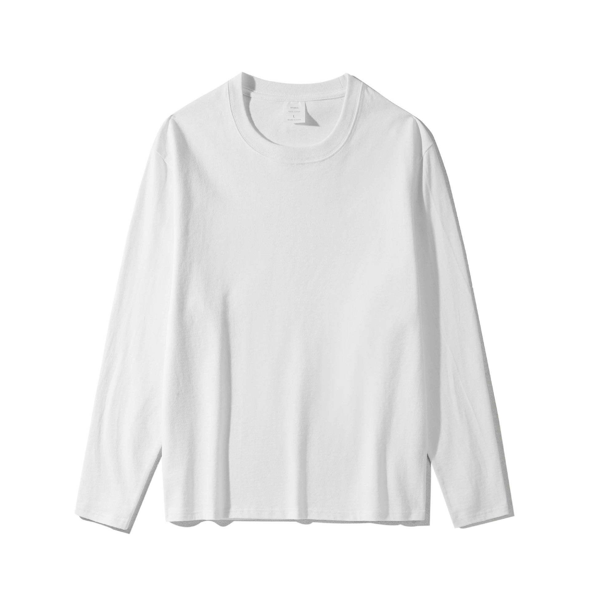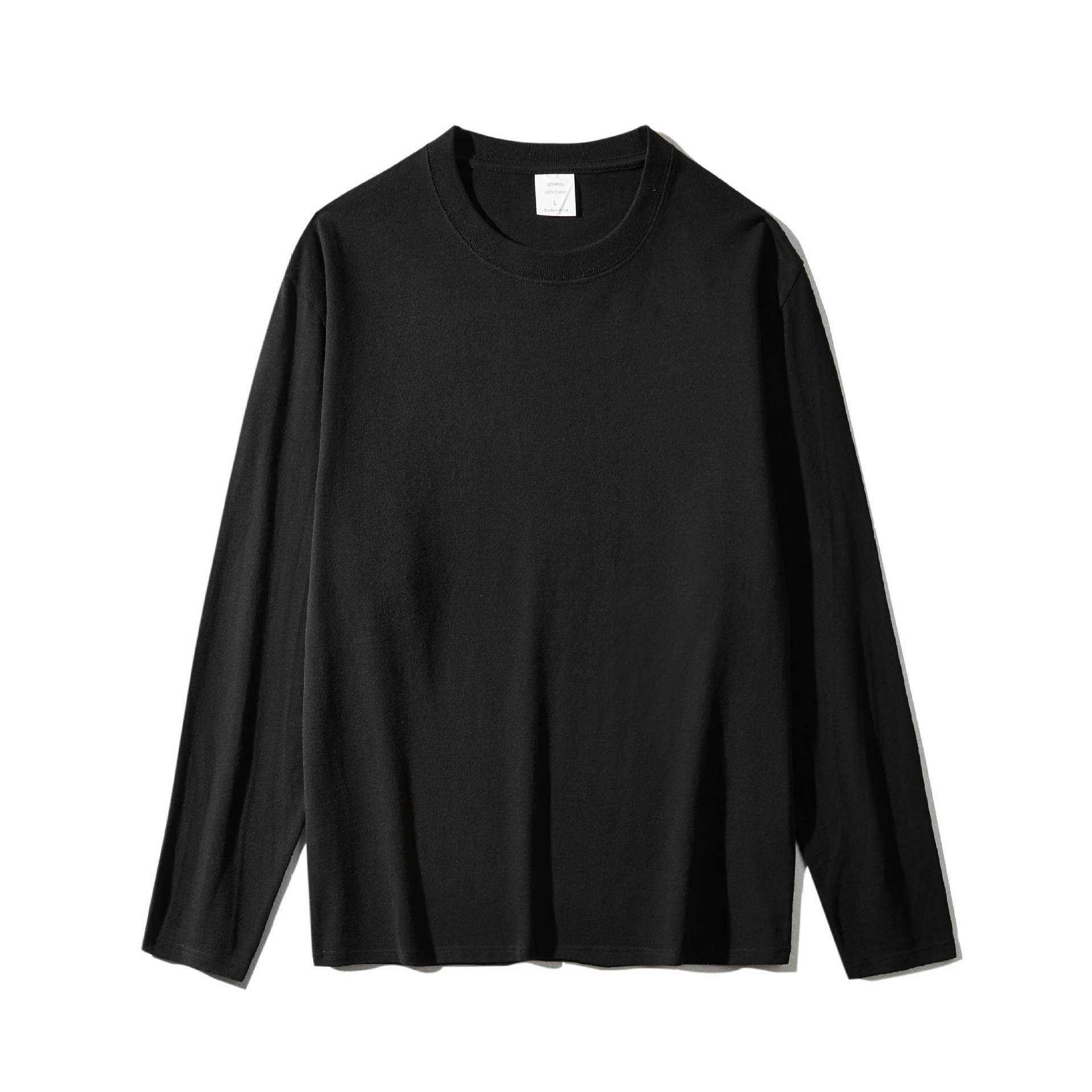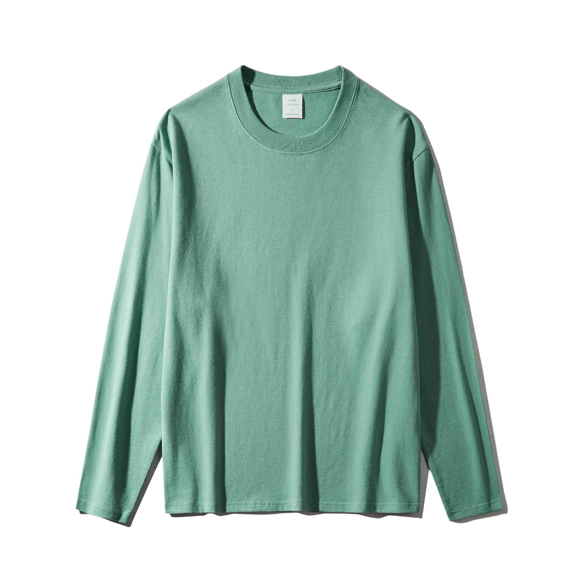230g 신장면 긴 반팔 티셔츠 남성용 솔리드 컬러 빗질 무거운 느슨한 탑 남성과 여성의 봄과 가을 캐주얼 기본 셔츠스토어 가기