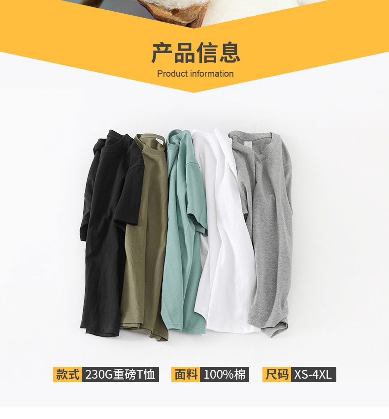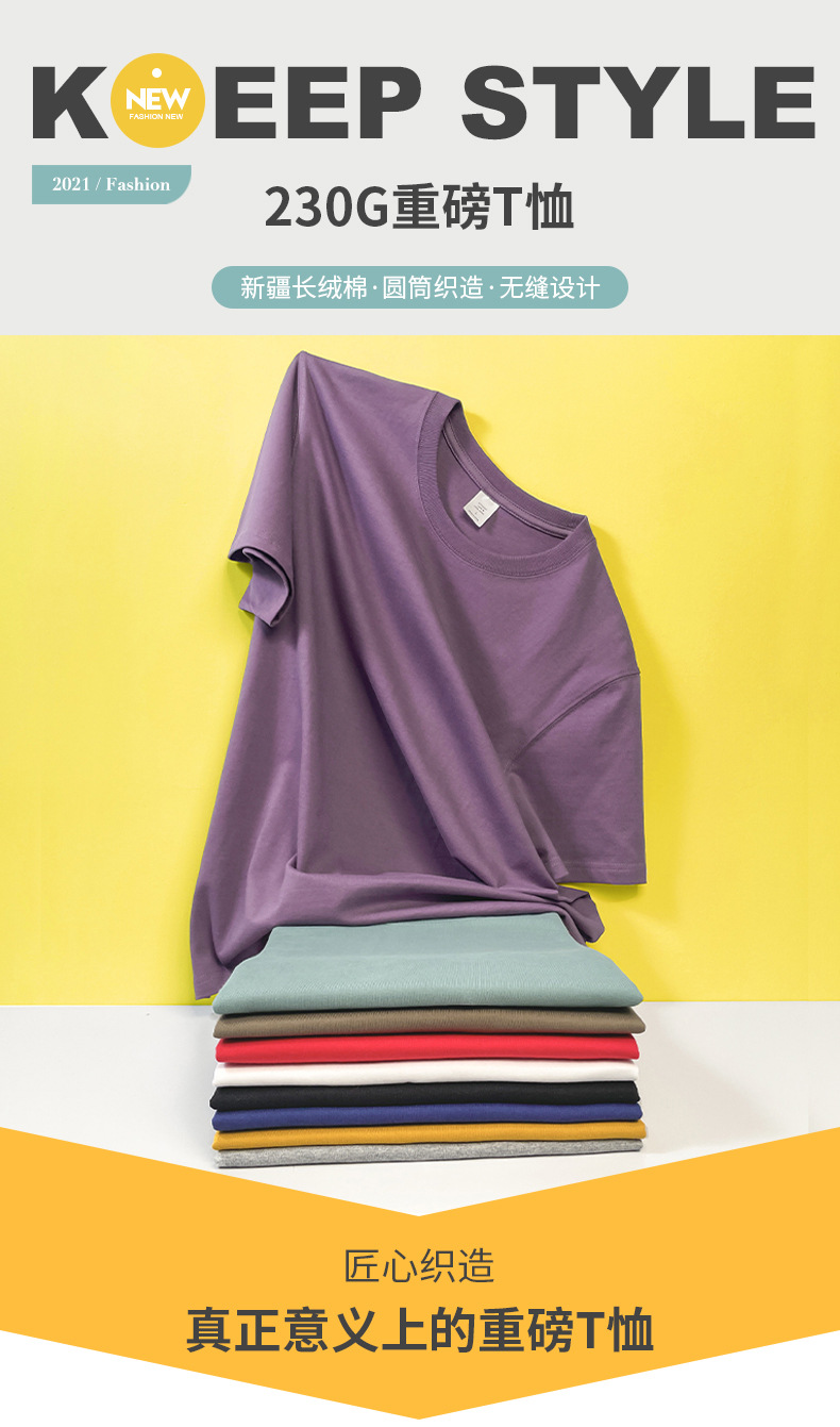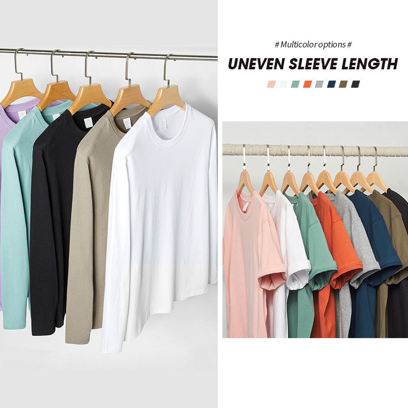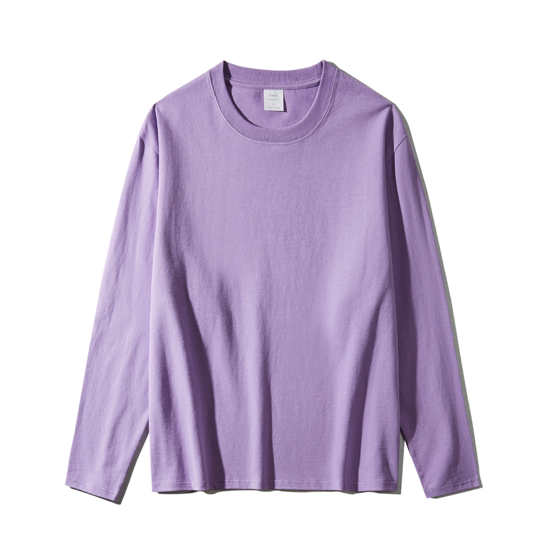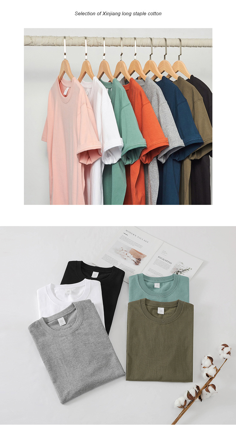 230g 신장면 긴 반팔 티셔츠 남성용 솔리드 컬러 빗질 무거운 느슨한 탑 남성과 여성의 봄과 가을 캐주얼 기본 셔츠스토어 가기