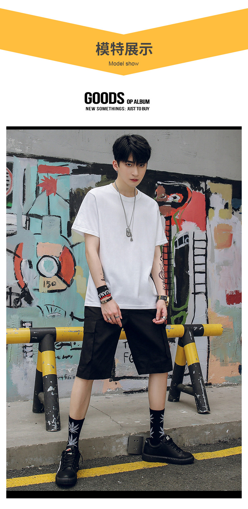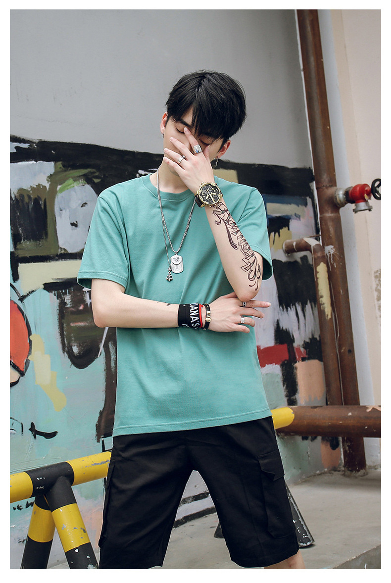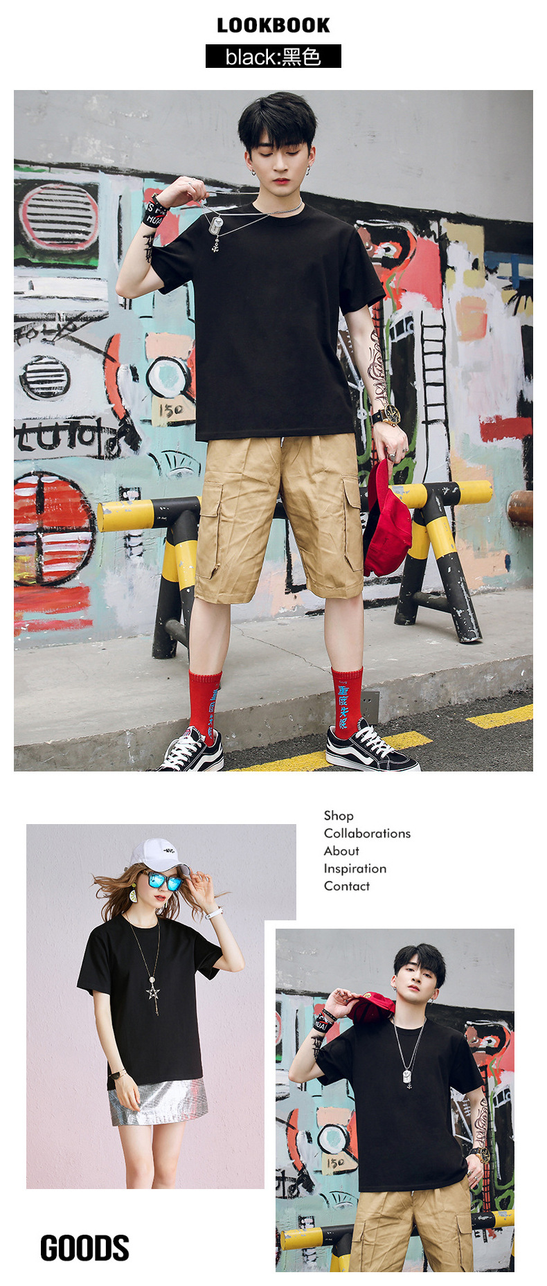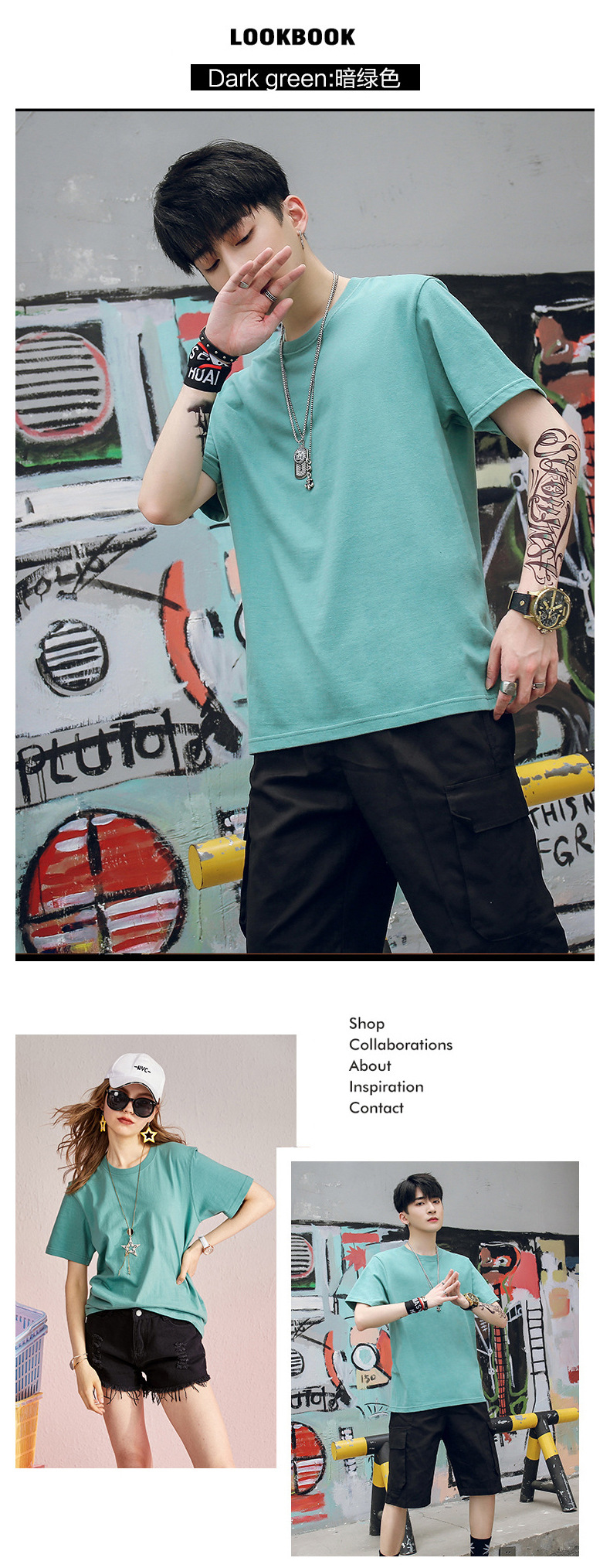 230g 신장면 긴 반팔 티셔츠 남성용 솔리드 컬러 빗질 무거운 느슨한 탑 남성과 여성의 봄과 가을 캐주얼 기본 셔츠스토어 가기