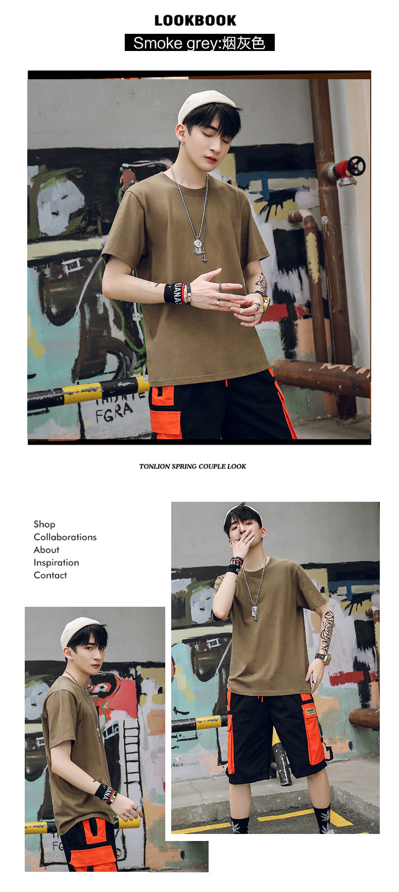 230g 신장면 긴 반팔 티셔츠 남성용 솔리드 컬러 빗질 무거운 느슨한 탑 남성과 여성의 봄과 가을 캐주얼 기본 셔츠