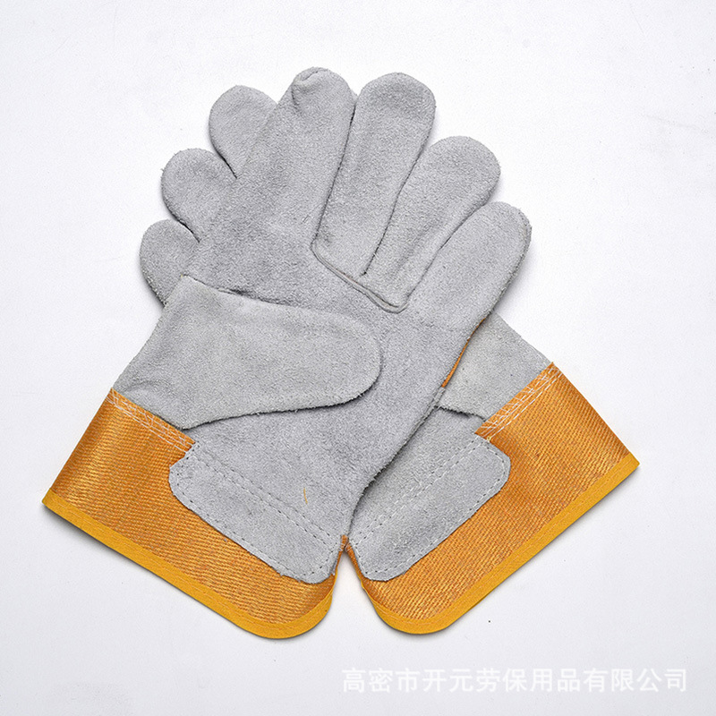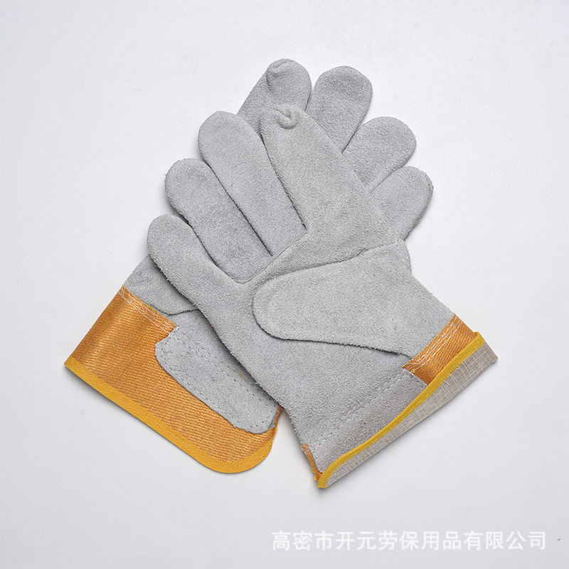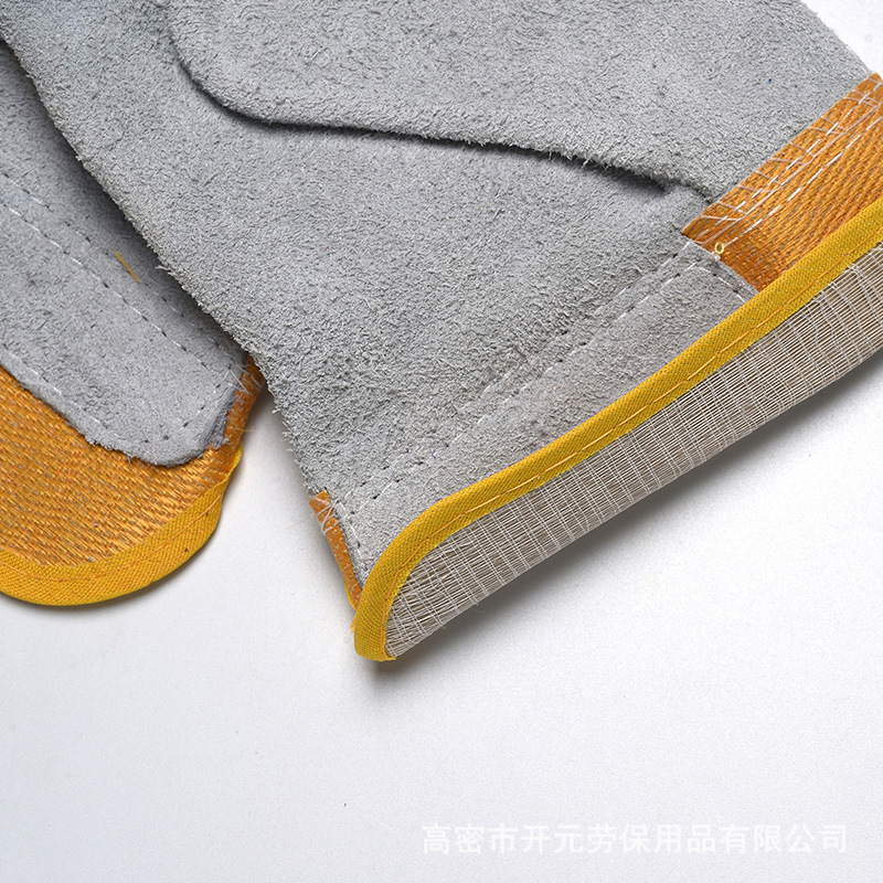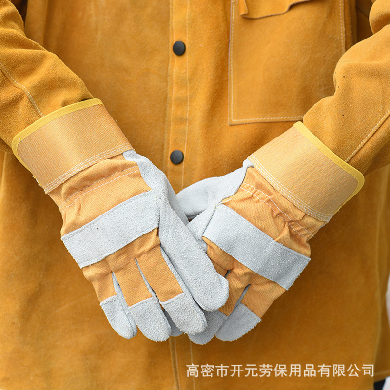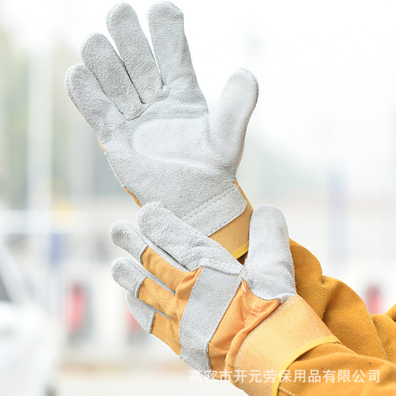 소가죽 용접 장갑, 화상 방지 및 내마모성, 천연 노란색 고무, 전장 용접 장갑, 단열 용접 광부 미끄럼 방지 장갑