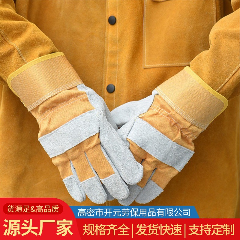 소가죽 용접 장갑, 화상 방지 및 내마모성, 천연 노란색 고무, 전장 용접 장갑, 단열 용접 광부 미끄럼 방지 장갑스토어 가기