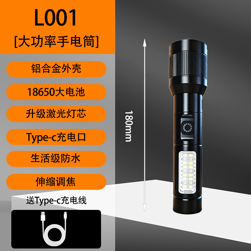 • L001 레이저 램프 구슬 텔레스코픽 초점 조절(측면 조명 포함) [손전등 + 충전 케이블 + 상자 포장]