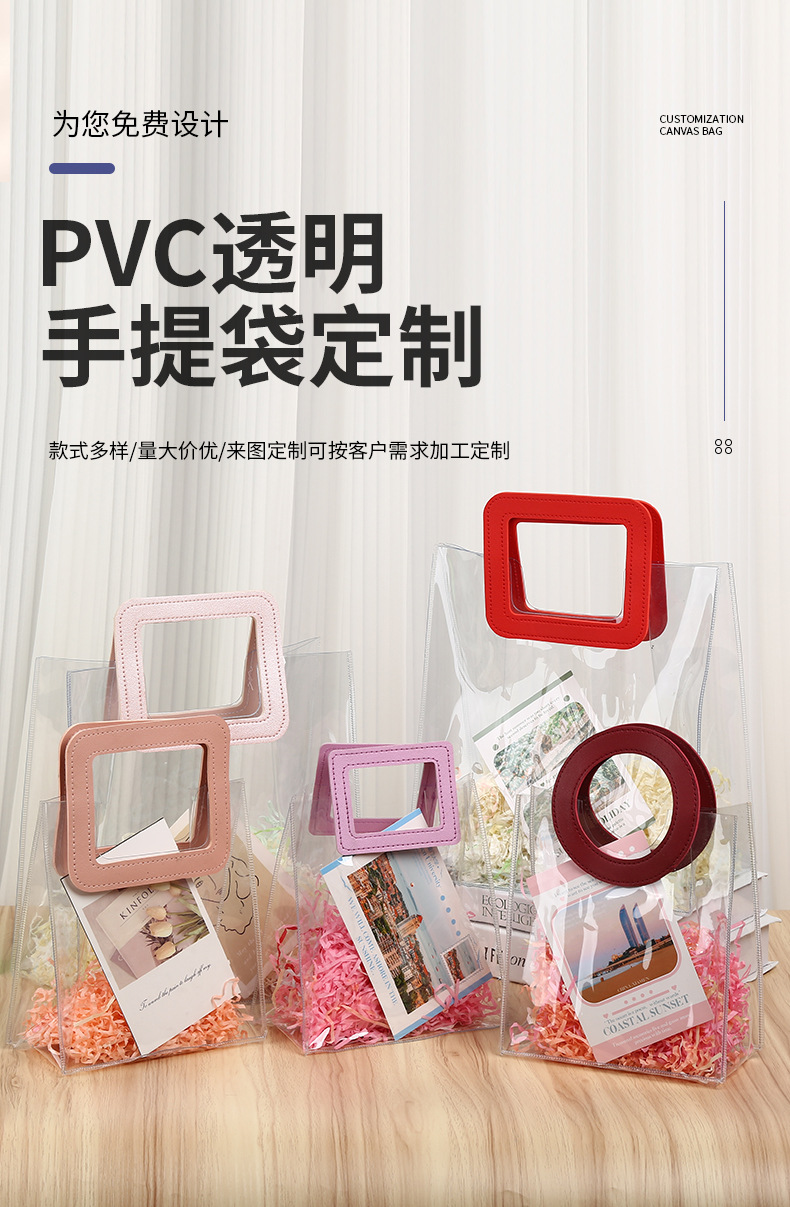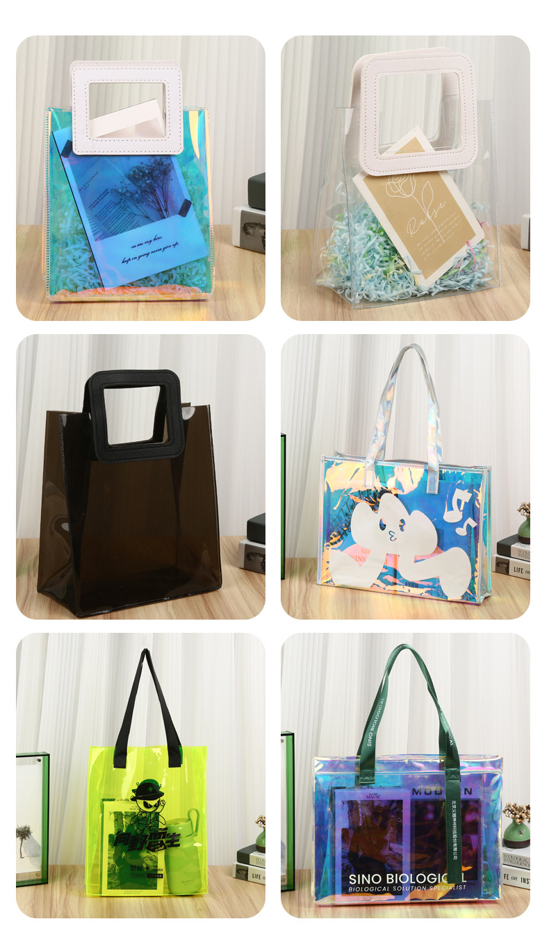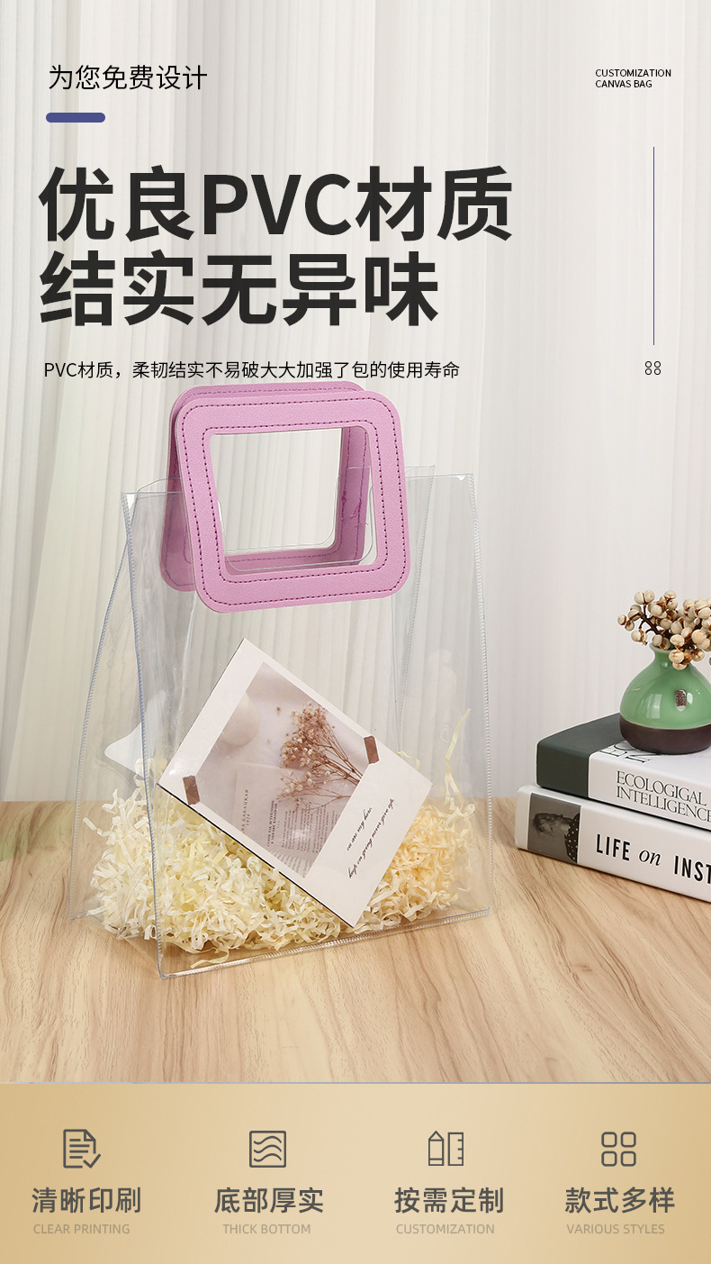 즉시 배송 가능한 PVC 투명 기념품 가방, 웨딩 답례품 가방, 플라스틱 손잡이 가방, 인스타 감성 핸드백스토어 가기