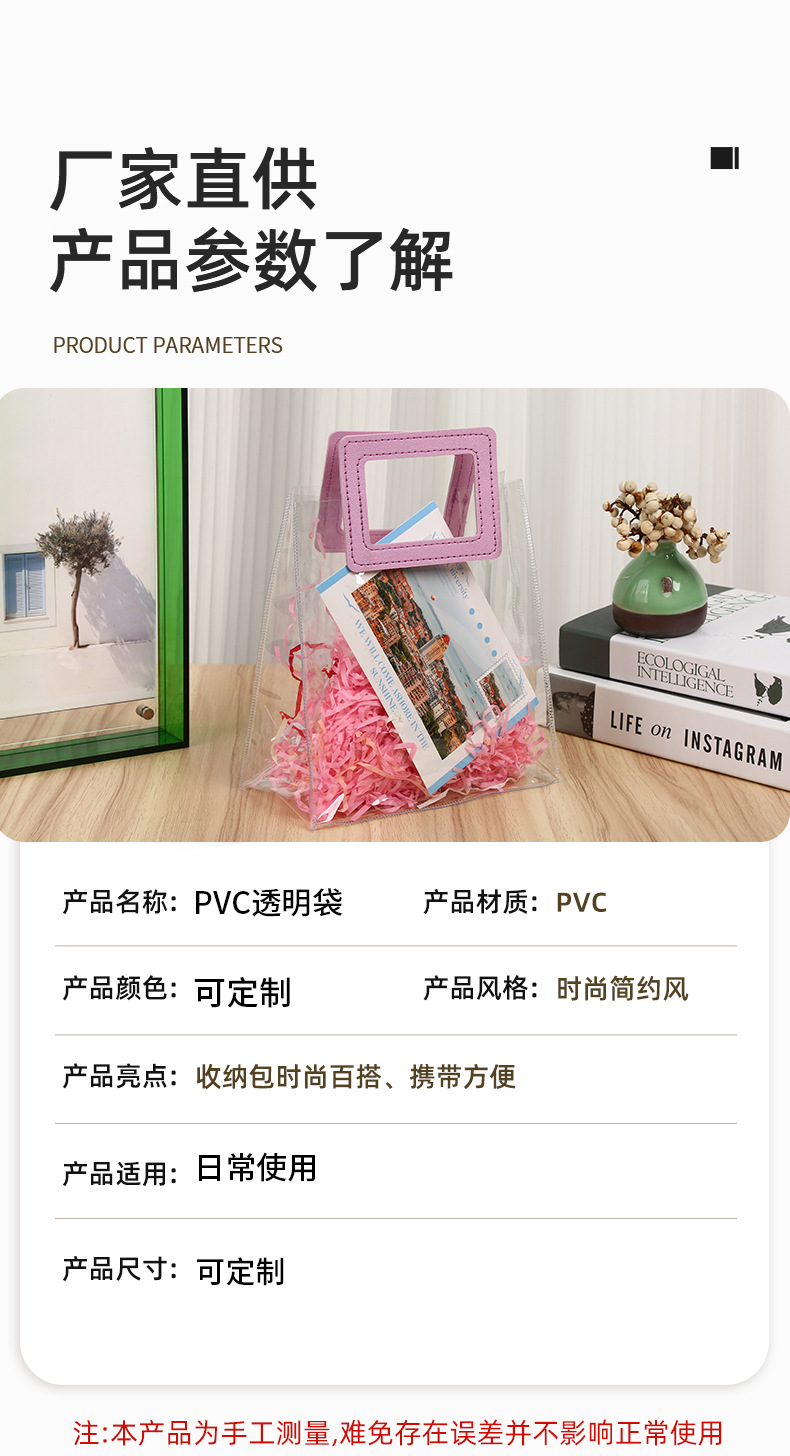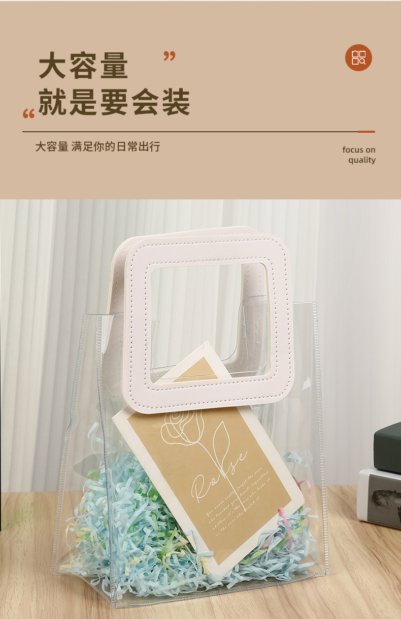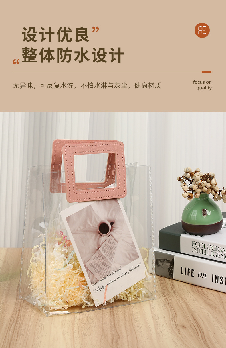 즉시 배송 가능한 PVC 투명 기념품 가방, 웨딩 답례품 가방, 플라스틱 손잡이 가방, 인스타 감성 핸드백스토어 가기