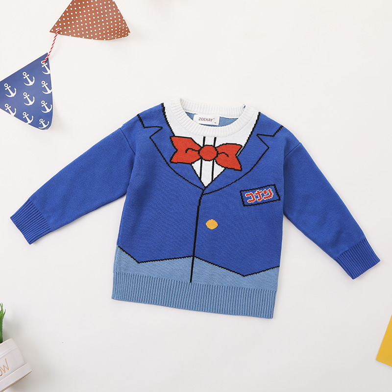 童装春秋儿童毛衣男童柯南女童美少女战士宝宝针织毛衣百褶裙套装