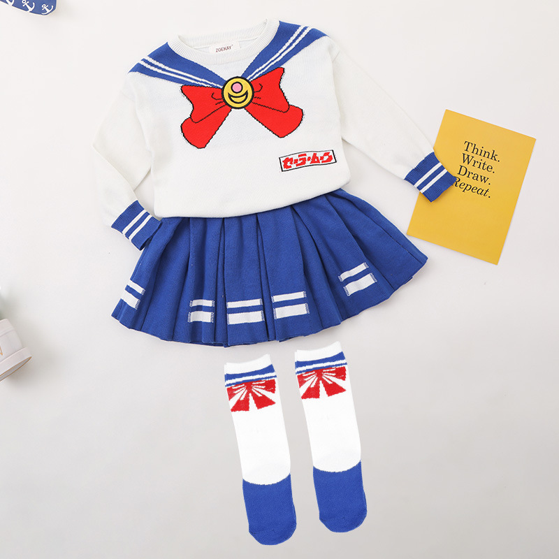 아동복 봄 가을 어린이 스웨터 남아 코난 여아 세일러문 니트 플리츠 스커트 세트 소재 유아용스토어 가기