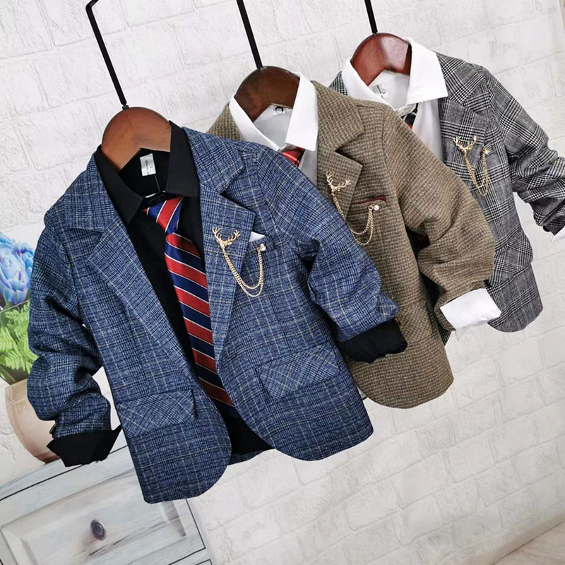 한국 스타일 어린이 세트 2023 봄 가을 옷 소년 영국 스타일 어린이 원피스 재킷 어린이 유행 작은 세트 유행