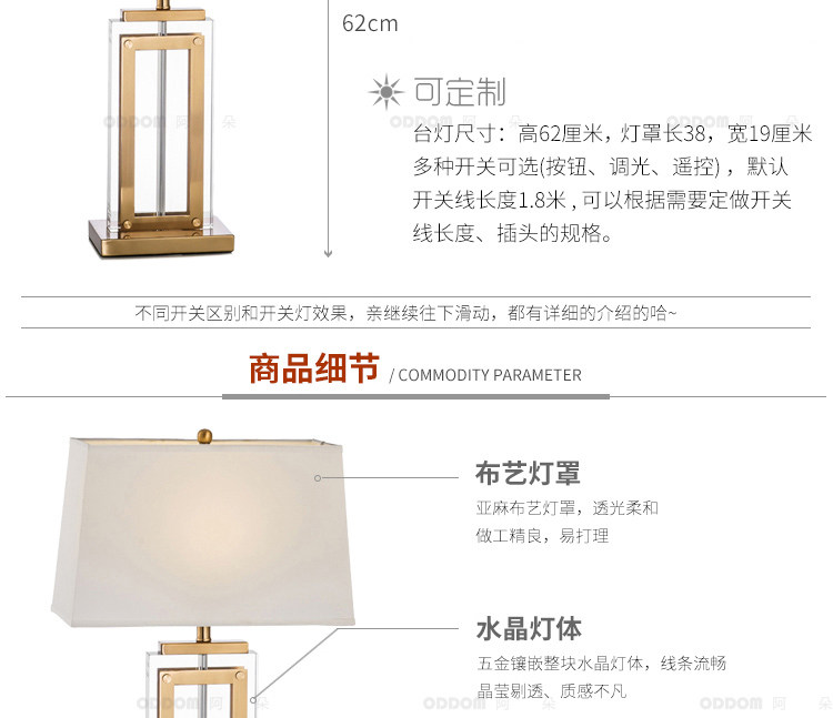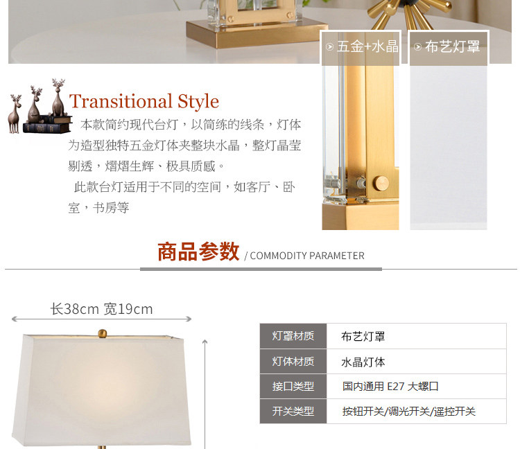 현대 간단한 테이블 램프 유행 크리스탈 침실 침대 옆 독특한 고급 거실 미국 새로운 중국 장식 침대 옆 램프스토어 가기