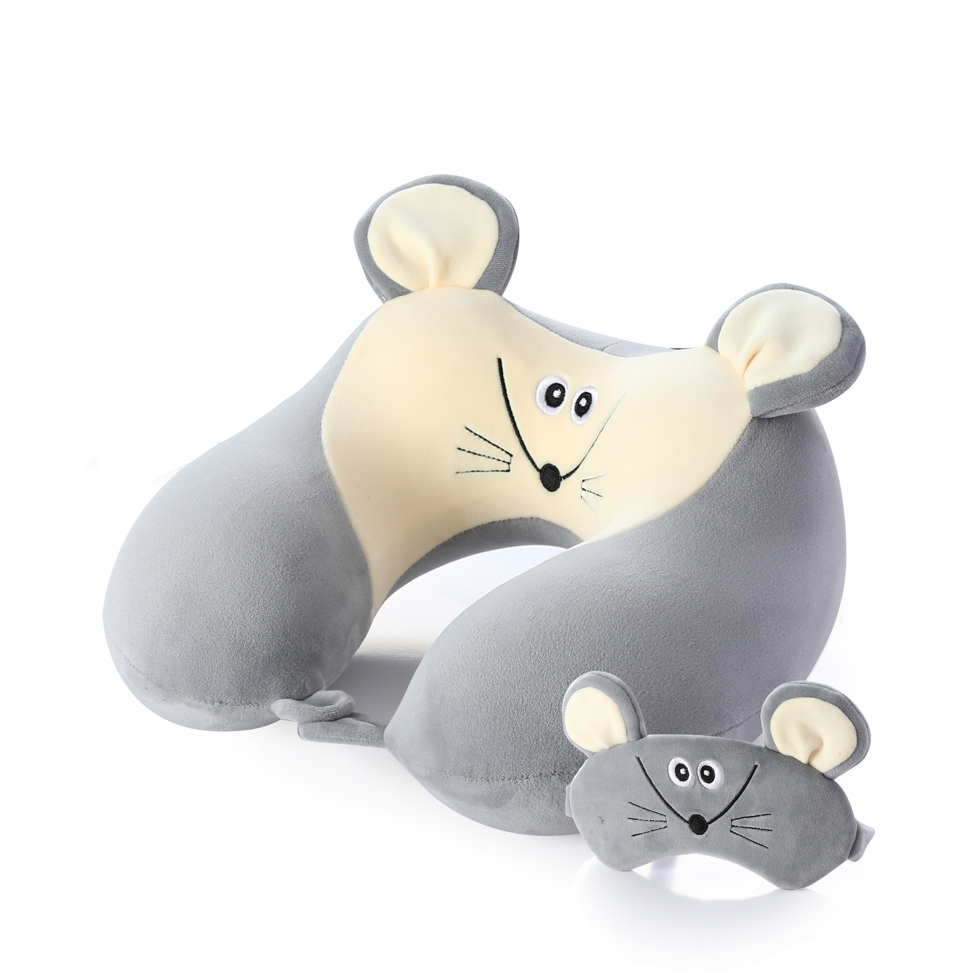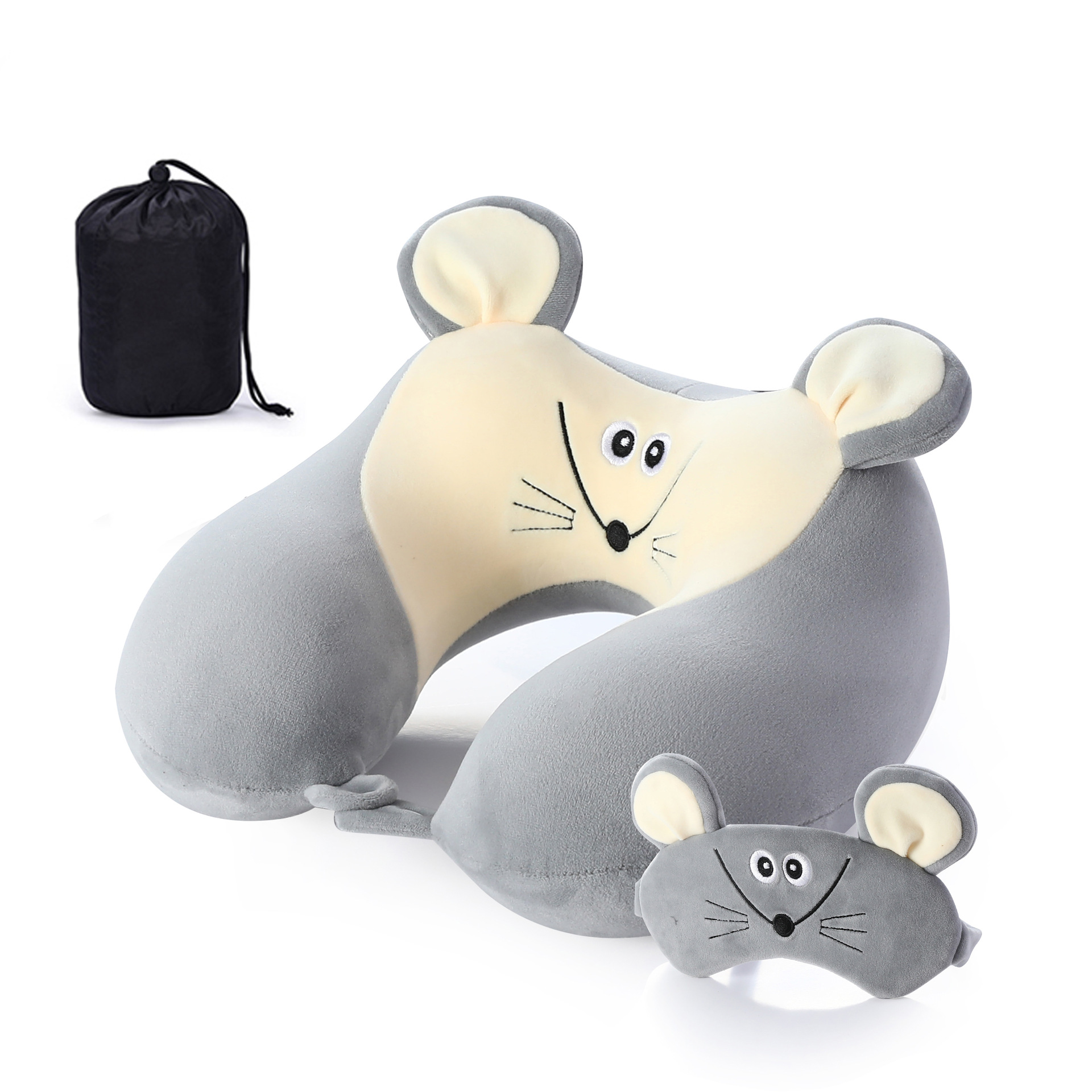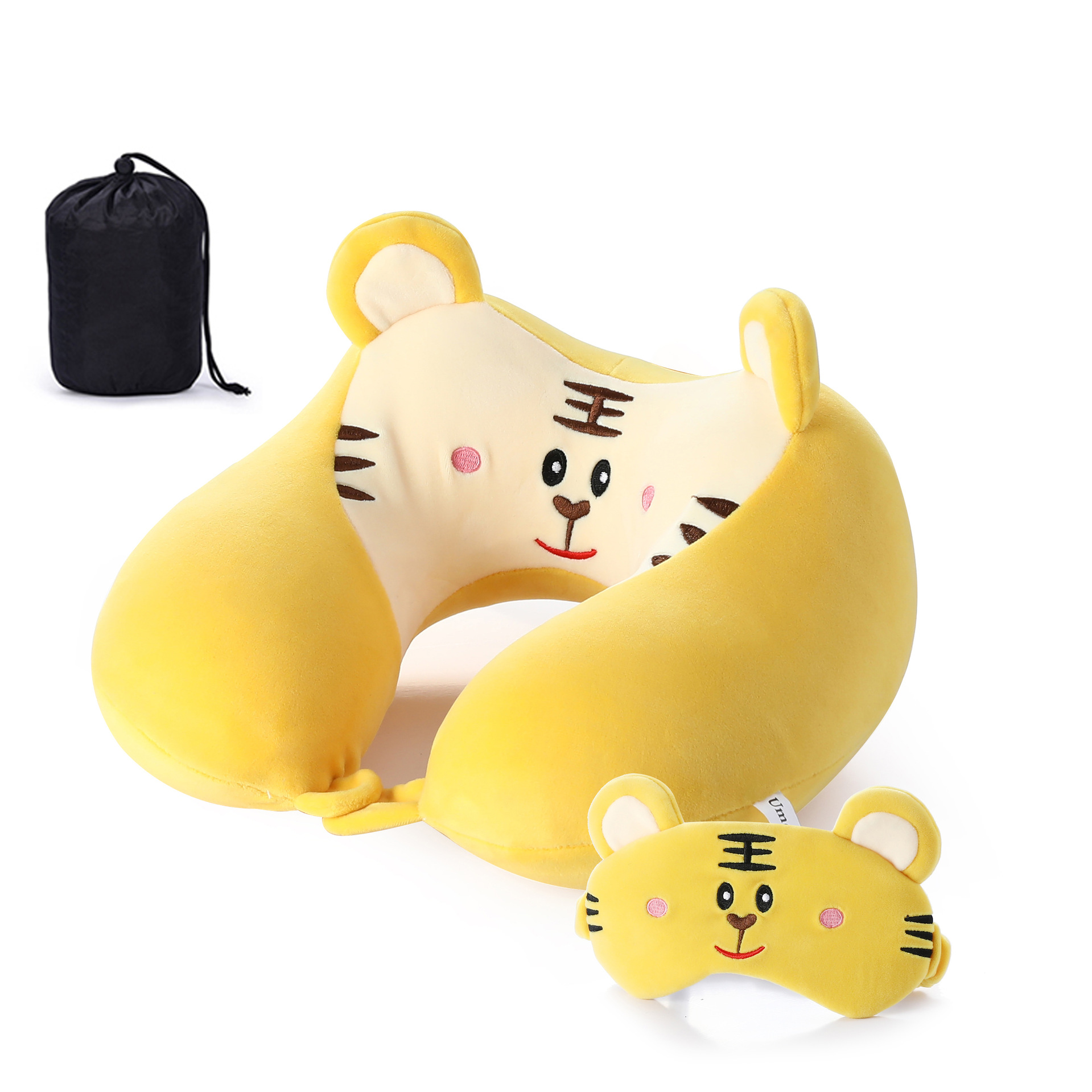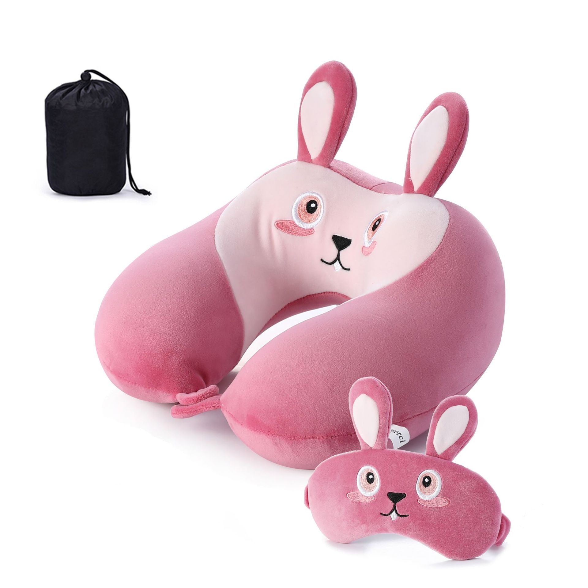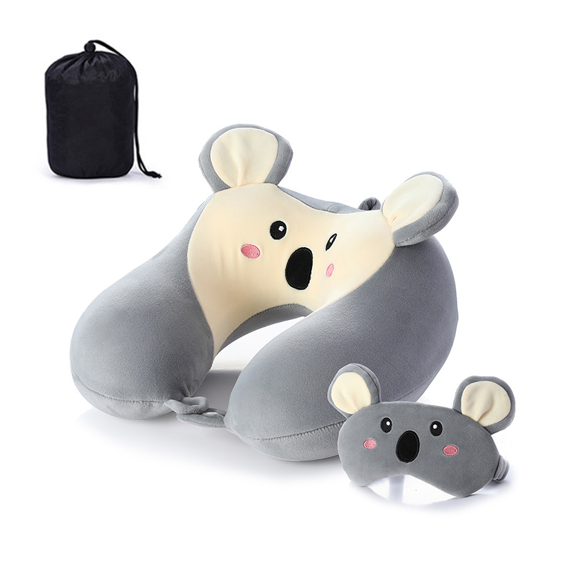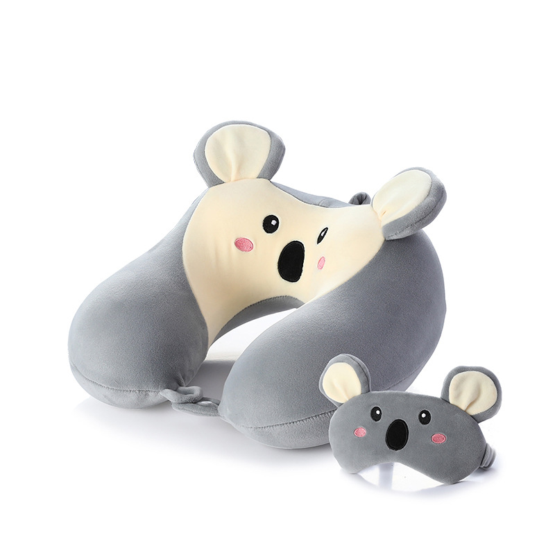 새로운 만화 작은 동물 플러시 메모리 폼 U 자형 베개 보관 남성용 및 여성용 사무실 점심 휴식 아이 마스크 목 베개