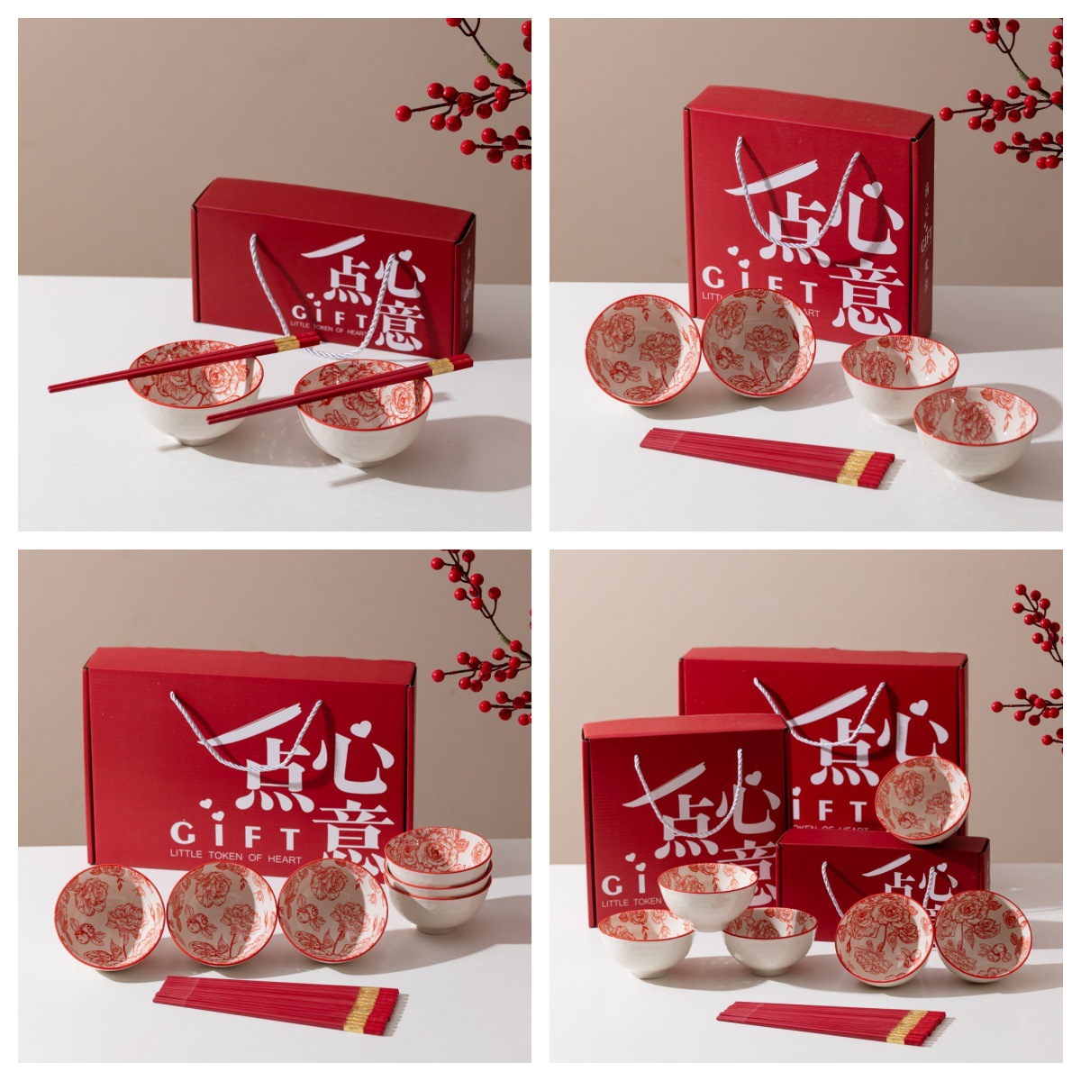 새해 창의적인 선물 그릇과 젓가락 세트 개업 행사 프로모션 단체 복지 결혼식 생일 기념품 선물 세트스토어 가기