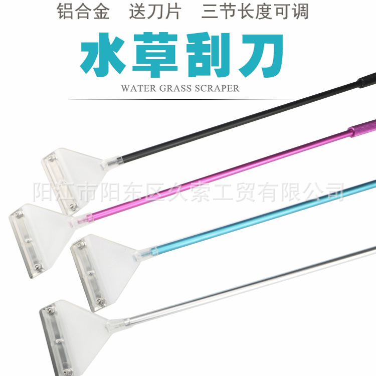 공장 직접 64cm 3 섹션 확장 알루미늄 합금 물 잔디 스크레이퍼 긁기 조류 칼 어항 청소 도구스토어 가기