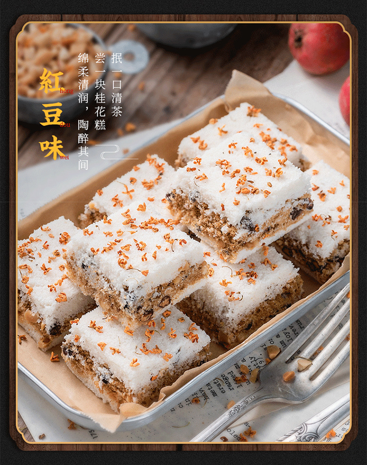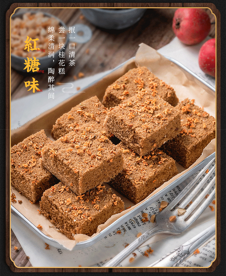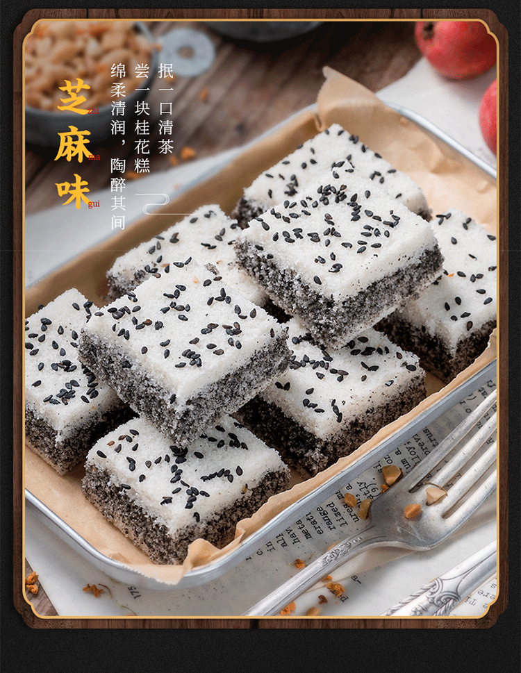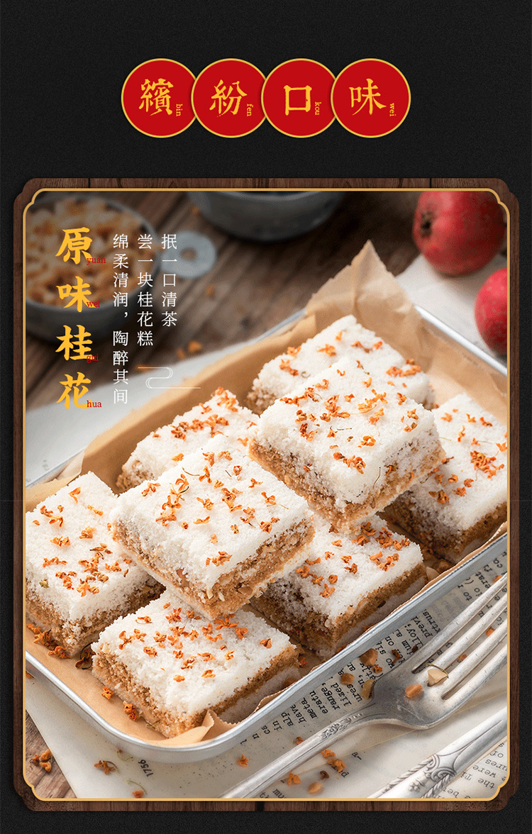 口味:共计四个,原味桂花糕、红糖桂花糕、黑芝麻糕、红豆桂花糕