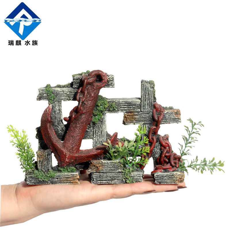 Ruiqi 수족관 창조적 인 선박 앵커 장식품 침몰 한 선박 난파 잠수함 어항 장식 공예 탱크 대포 가짜 물 잔디