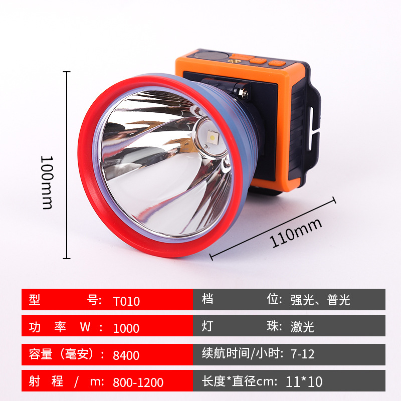 • T010-1000W 삼중 리튬 배터리 10cm 램프 헤드 [헤드라이트 + 충전 케이블 + 헤드밴드 + 포장 상자]