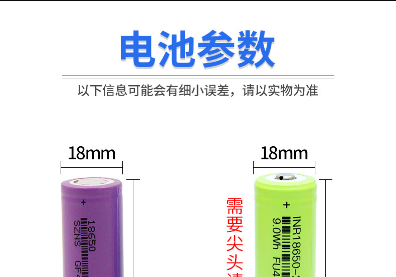 18650 뾰족한 리튬 배터리 1200mAh 강한 빛 손전등 휴대용 교수형 목 팬 초인종 램프 캠핑 조명