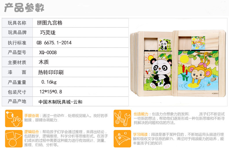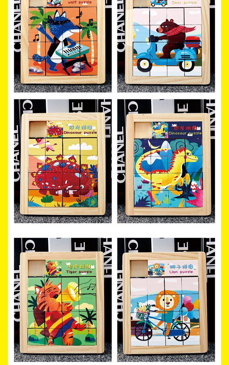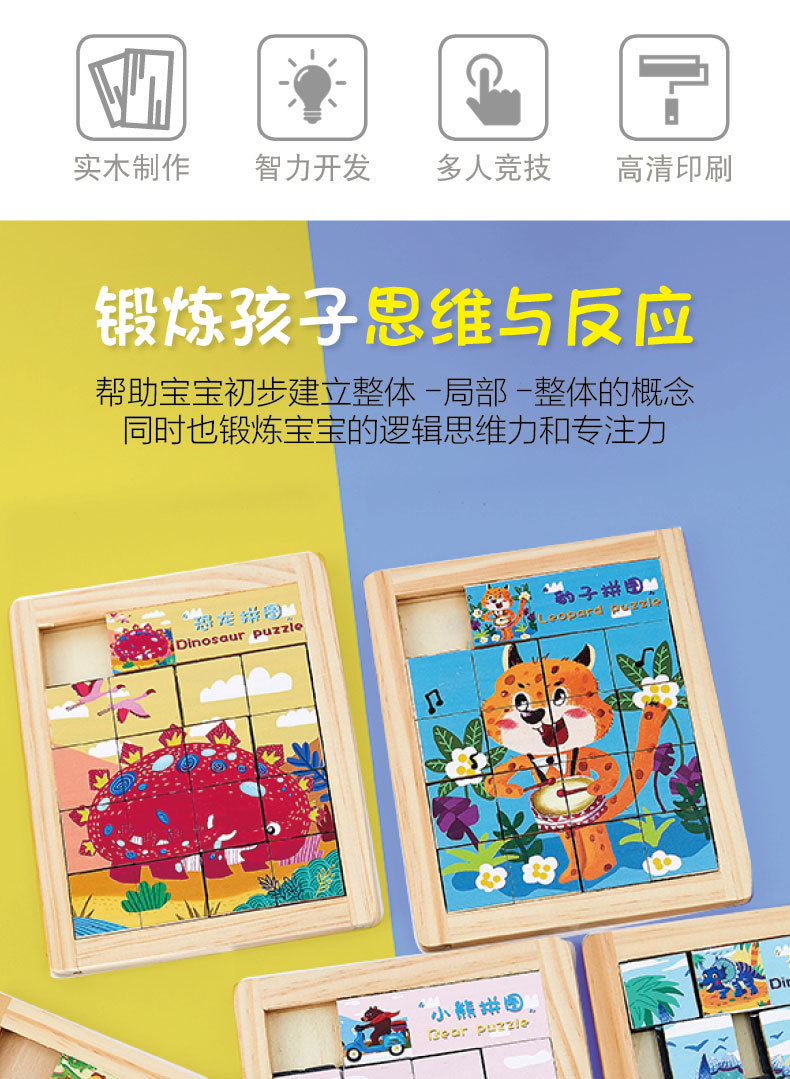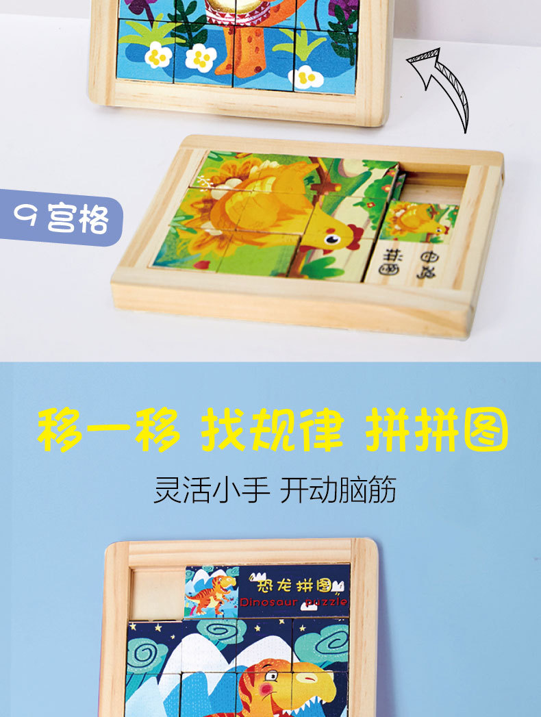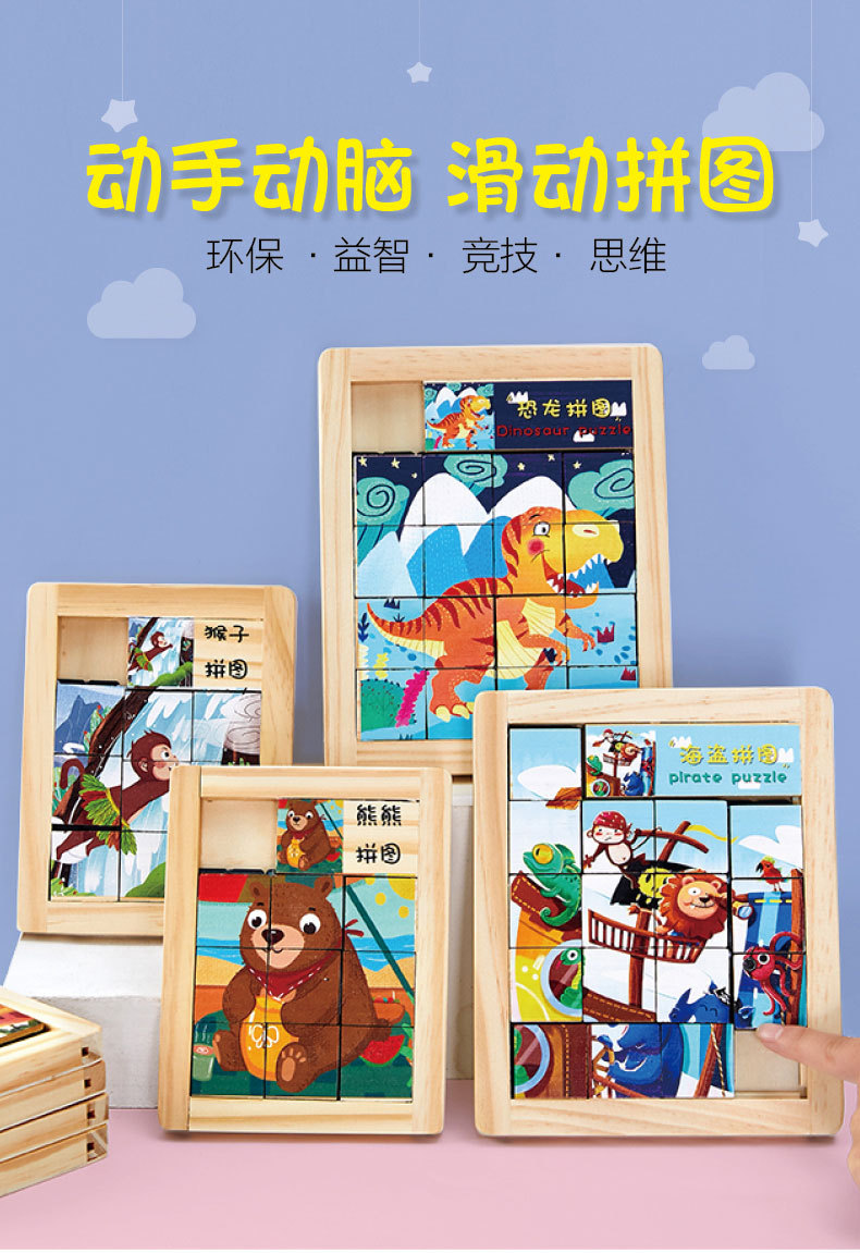 어린이 Jiugongge 슬라이딩 직소 퍼즐 조기 교육 강제 돌파 장난감 만화 동물 슬라이드 퍼즐스토어 가기