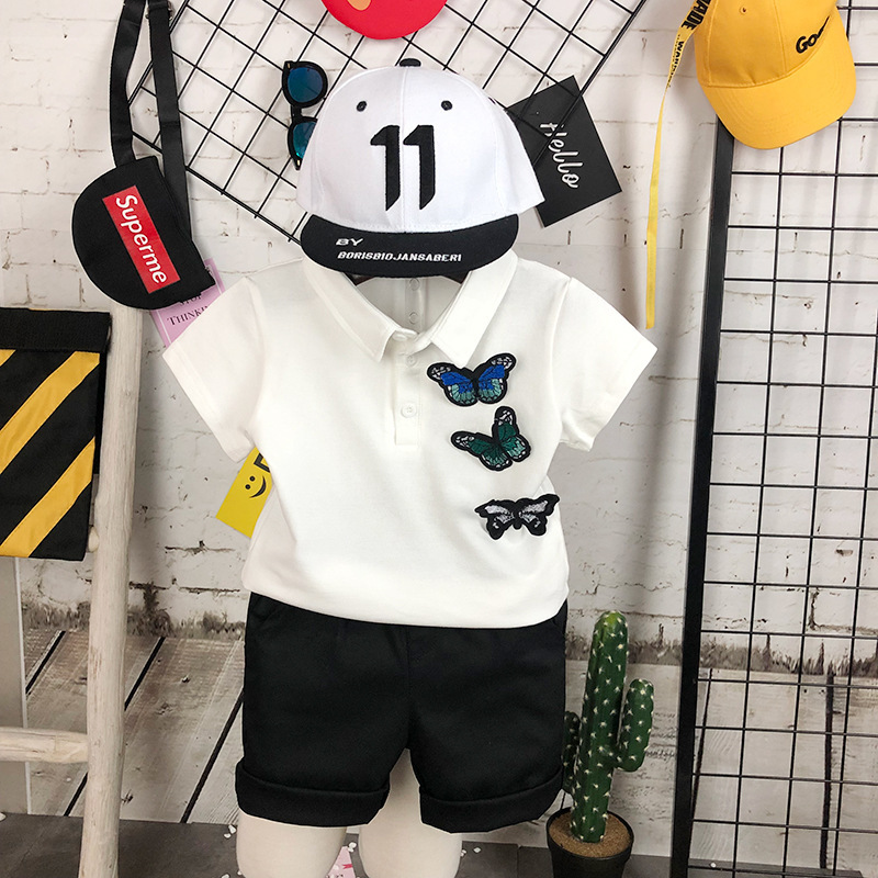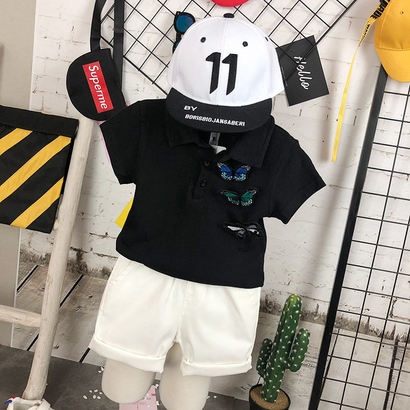 2023 여름의 새로운 3 소년 반팔 폴로 셔츠 5 어린이 나비 티셔츠 반바지 2 종 헤어 세트