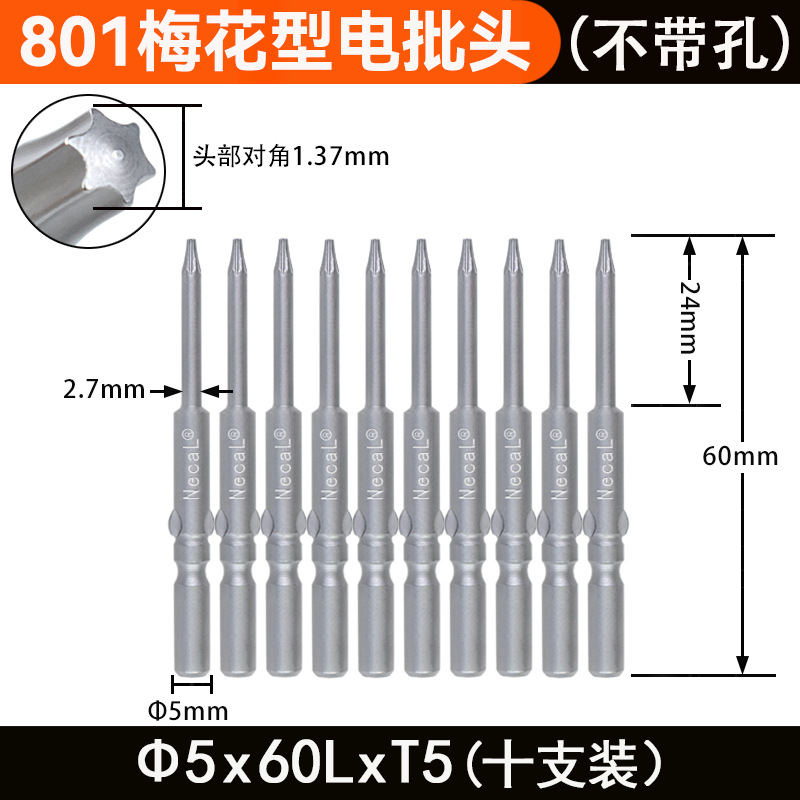 Nico S2 소재 801 매화 전기 비트 솔리드 스타 전기 스크루 드라이버 비트 5mm 라운드 핸들 비트