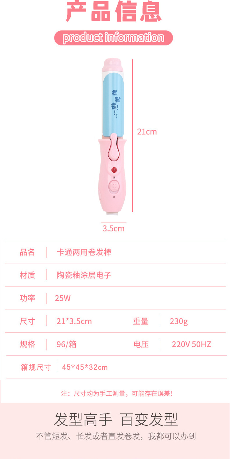 만화 소녀 하트 컬링 및 스트레이트닝 이중 목적 헤어 스타일러 학생 여성 스타일링 앞머리 스트레이트너 클립 박스형 컬링 아이언스토어 가기