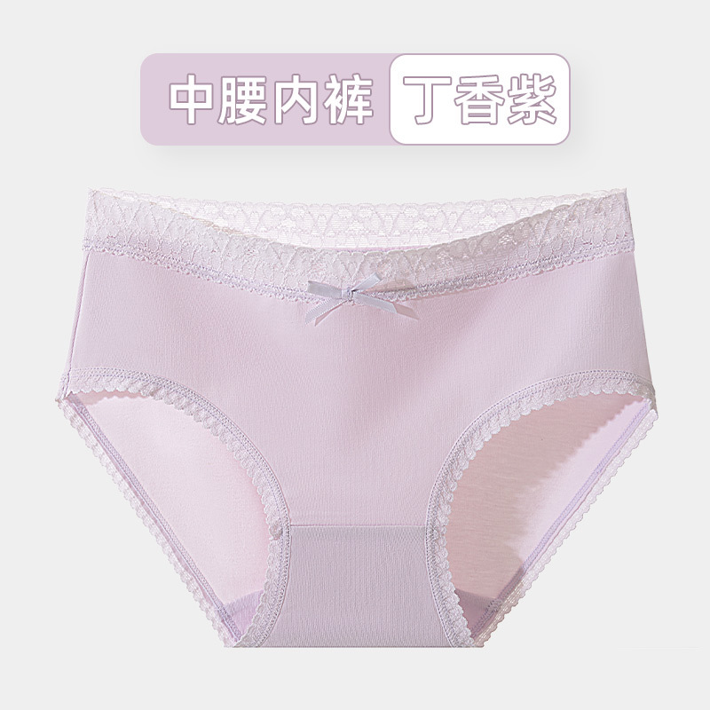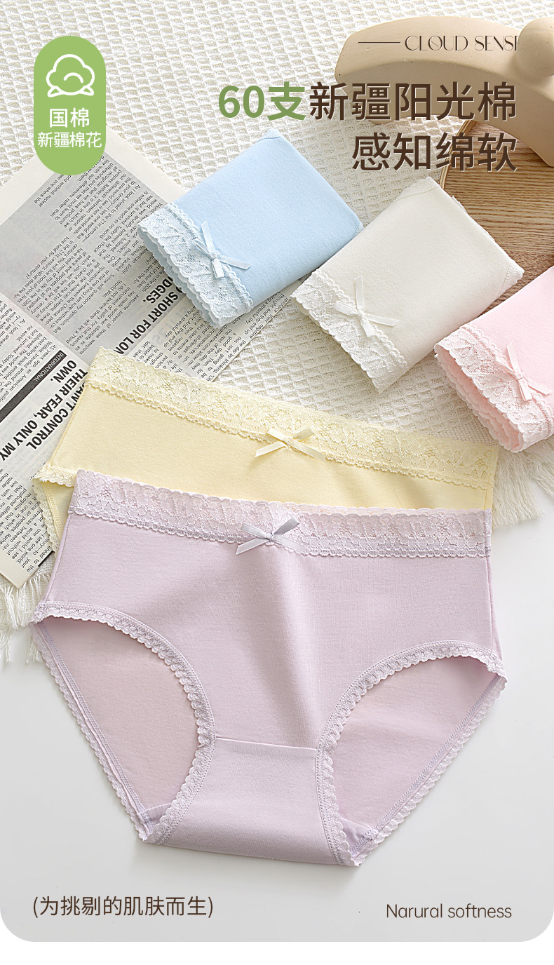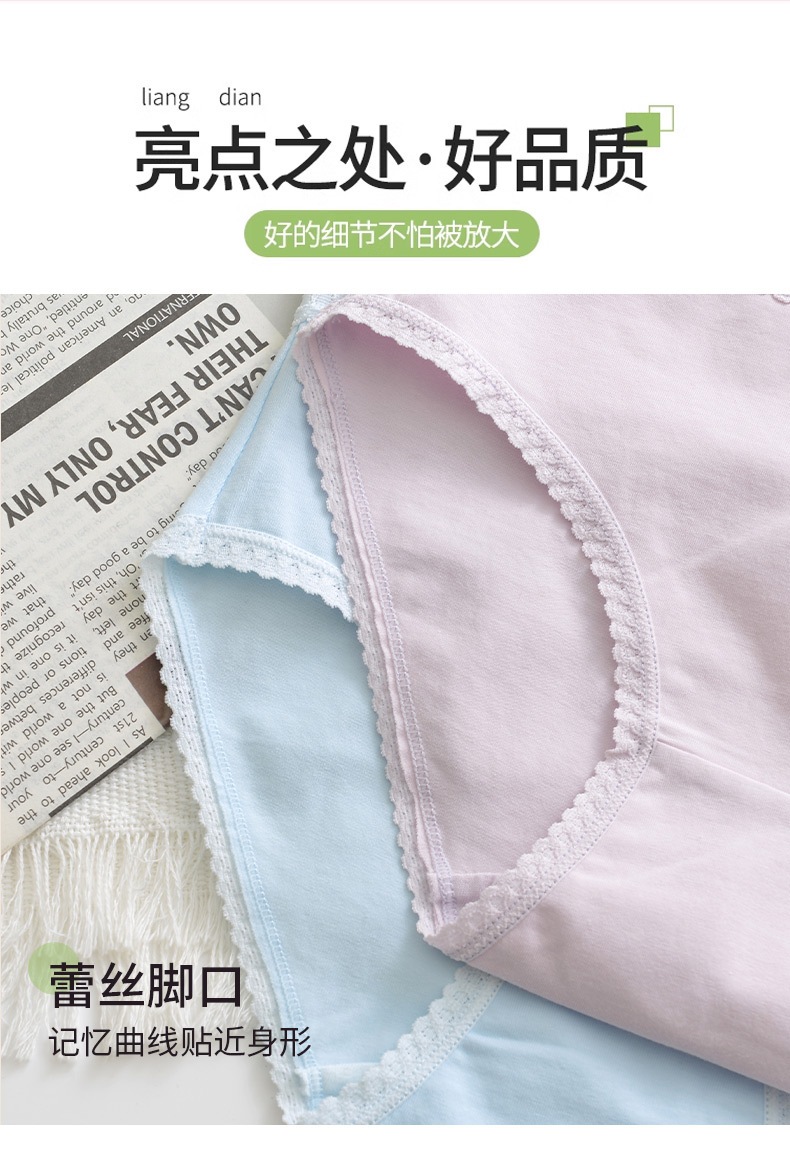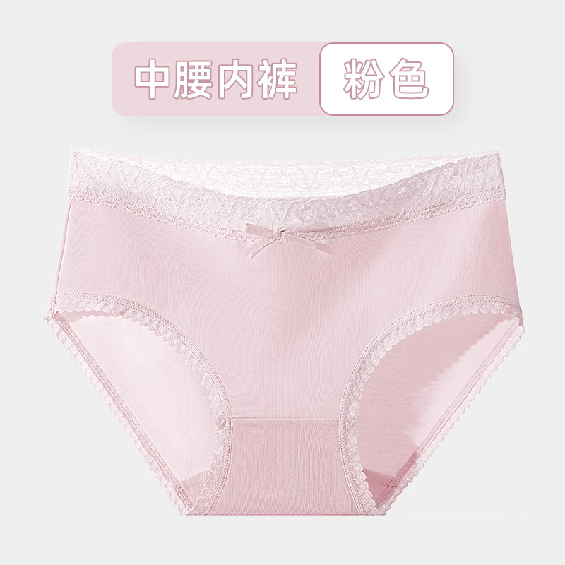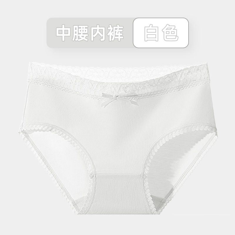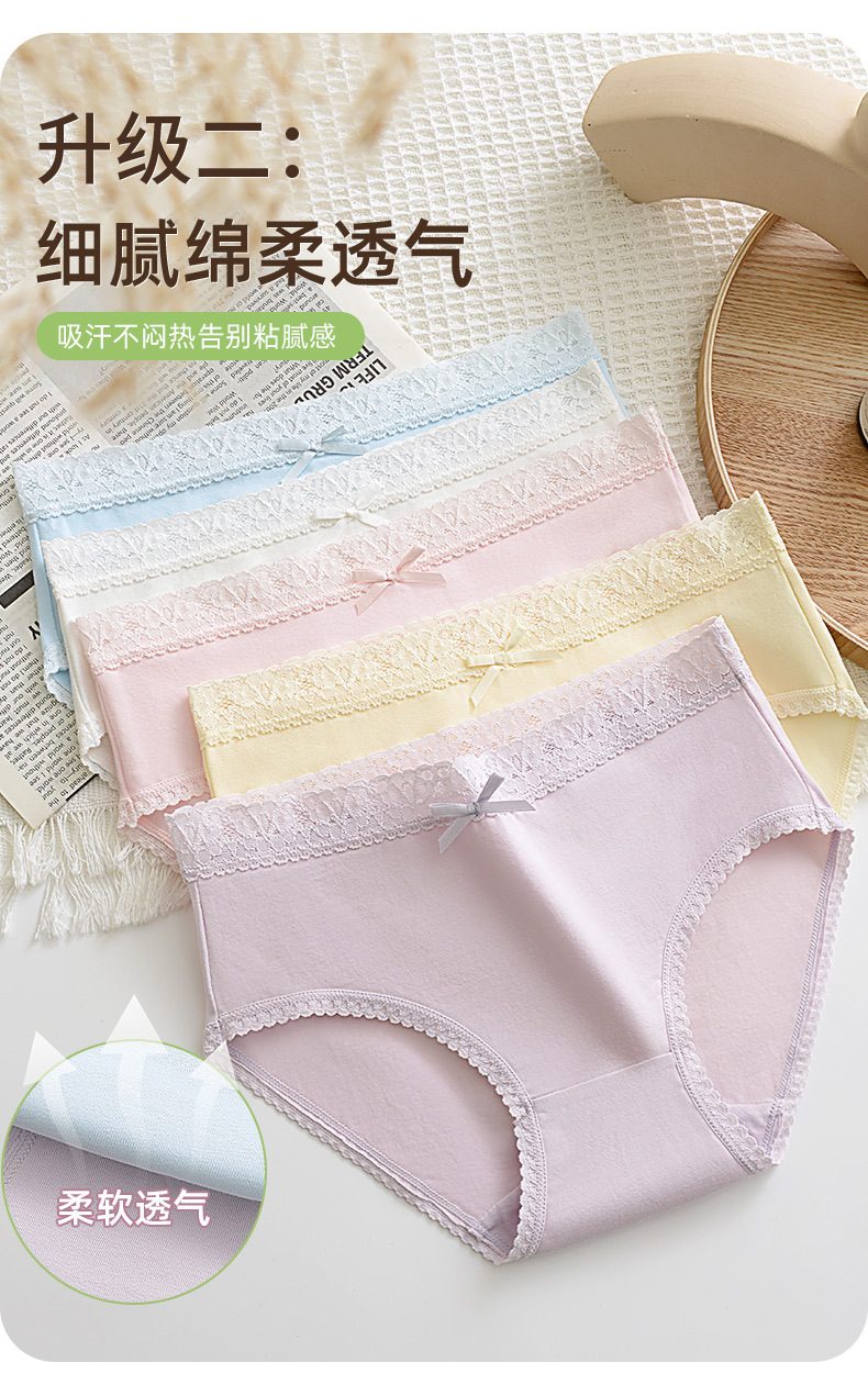 여성용 순면 속옷 통기성 단색 레이스 무봉제 반바지 중간 허리 소녀용 엉덩이를 감싸는 삼각 팬티 소녀 스타일스토어 가기