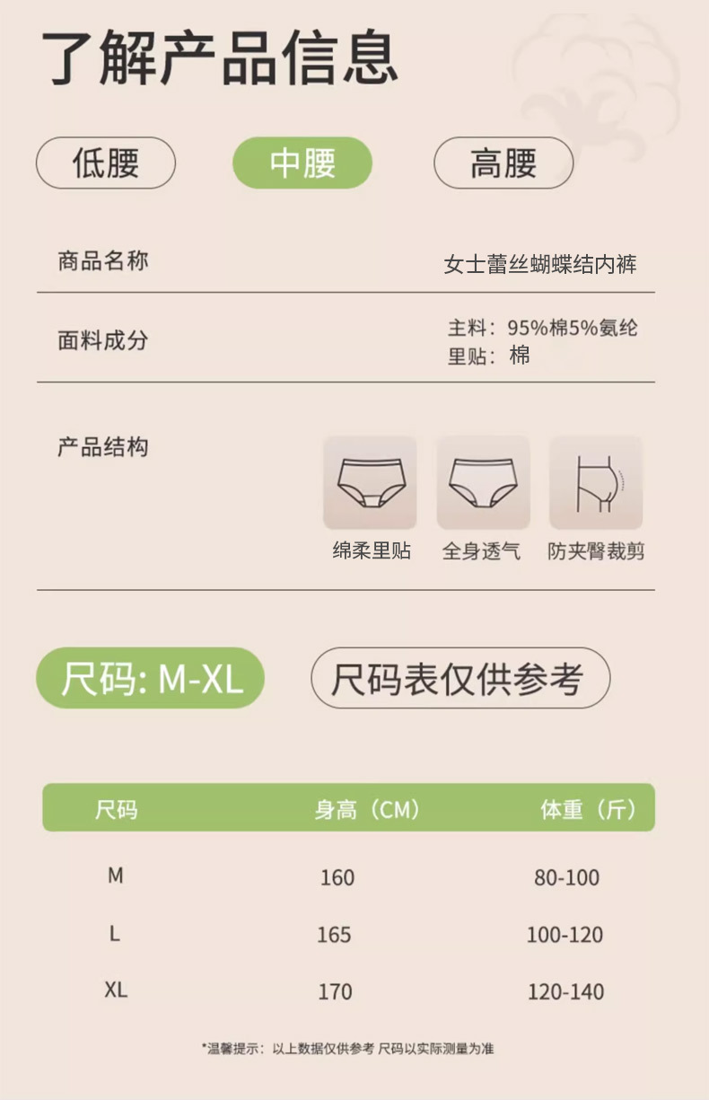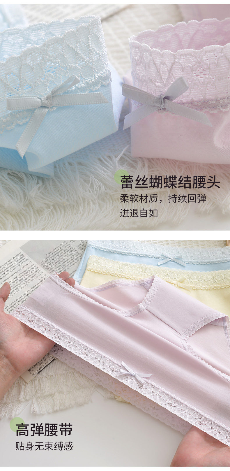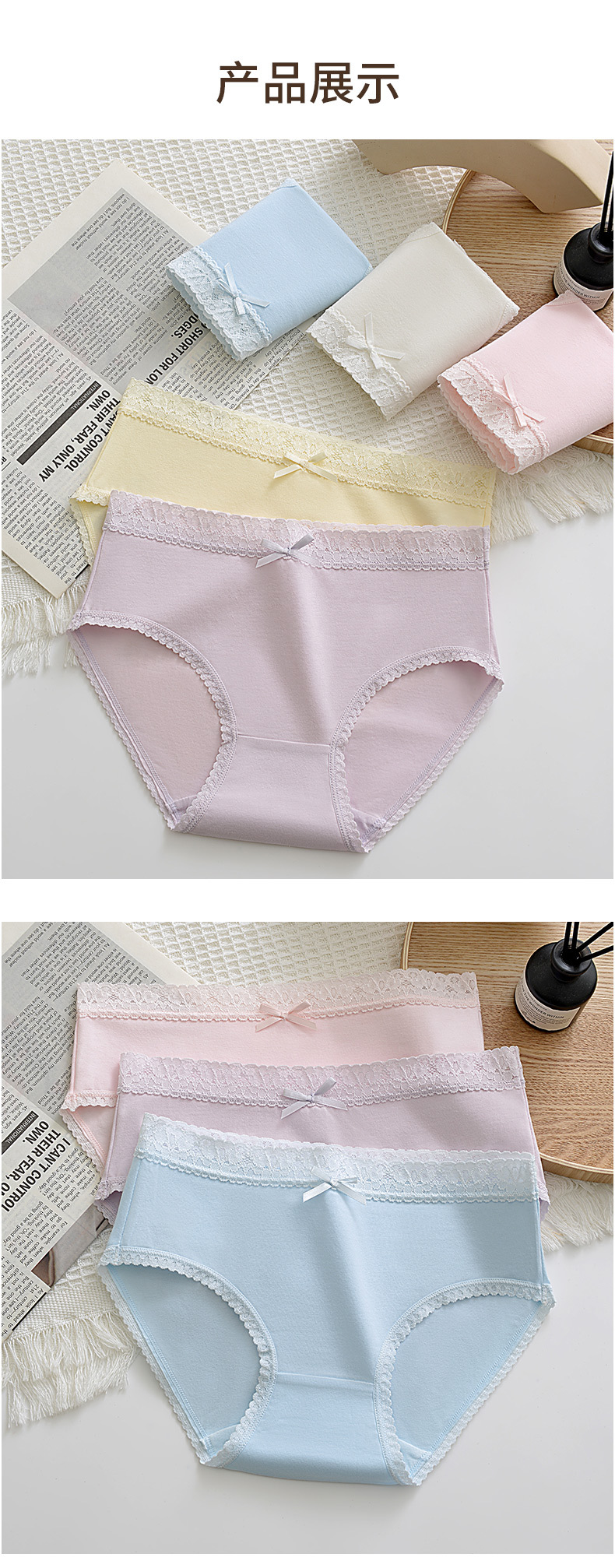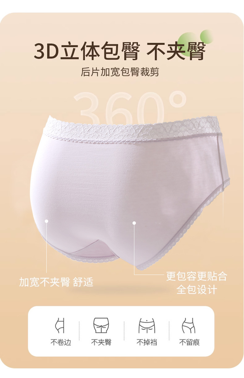 여성용 순면 속옷 통기성 단색 레이스 무봉제 반바지 중간 허리 소녀용 엉덩이를 감싸는 삼각 팬티 소녀 스타일스토어 가기