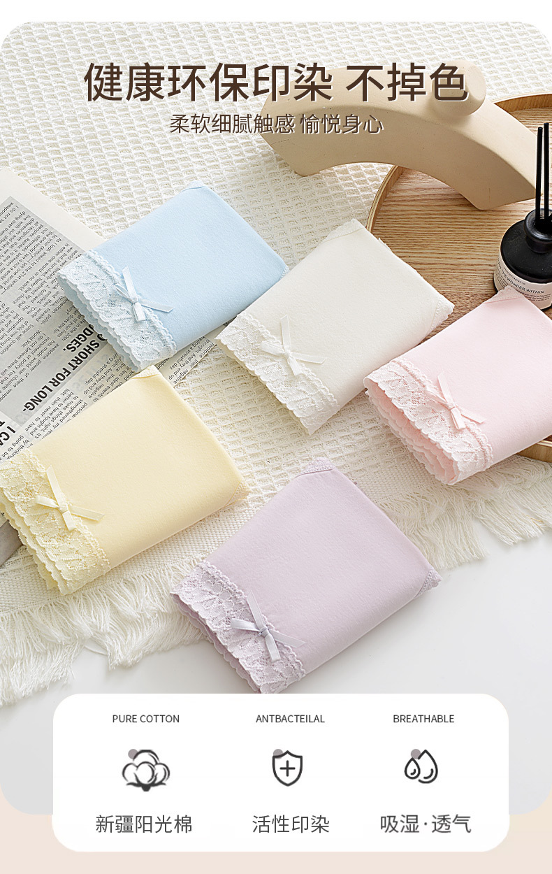 여성용 순면 속옷 통기성 단색 레이스 무봉제 반바지 중간 허리 소녀용 엉덩이를 감싸는 삼각 팬티 소녀 스타일